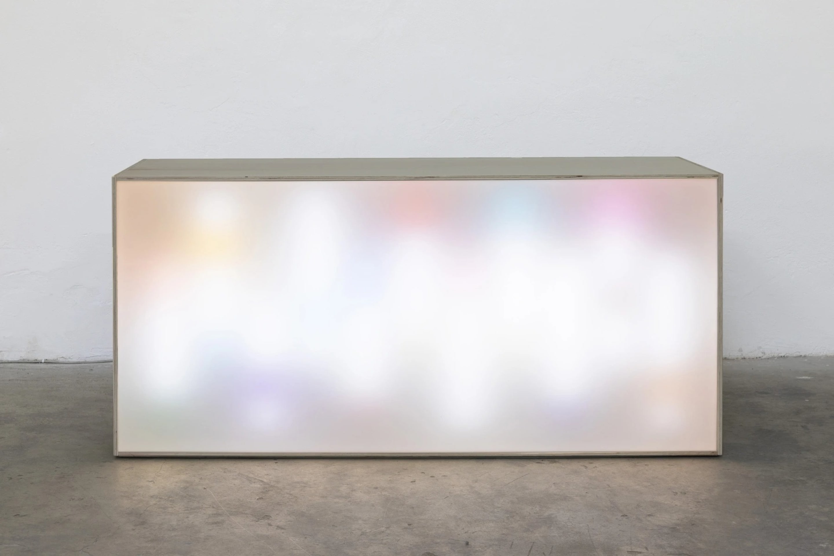Wood, lights, plexiglass, Roscolux gel filter swatch book, steel ball bearing