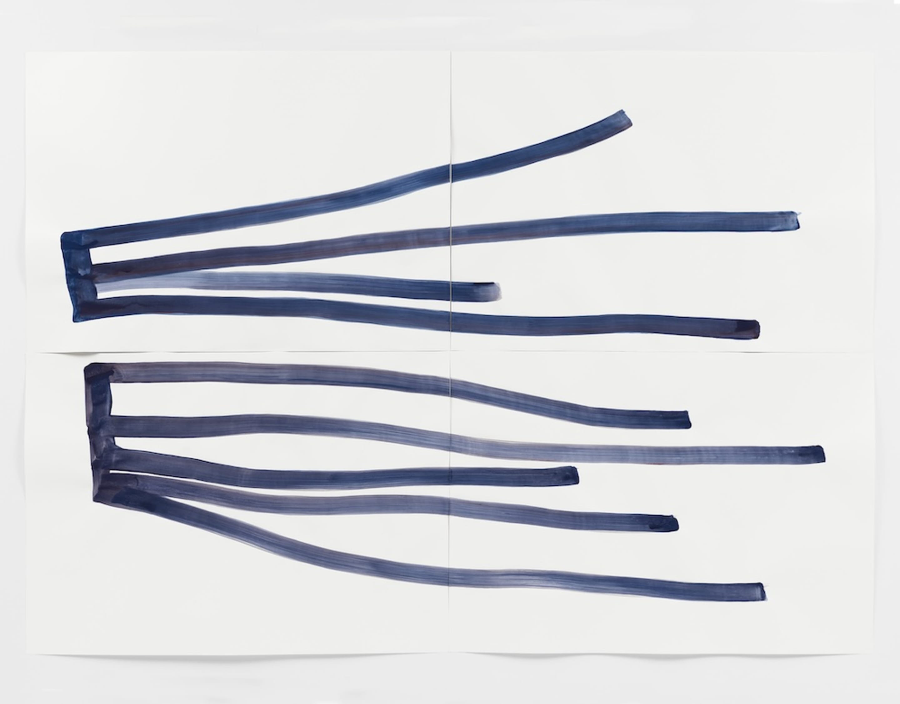 Bächli has developed her decade-long drawing practice working on sheets of white paper of different sizes, qualities and tones, and using Indian ink, charcoal, gouache or pastels. Using the body and its movements as a starting point, her work spreads into everything that can be considered part of the realm of feeling. The result is not just painterly moments: the drawings often seem to capture, as if in film stills, a cinematic way of looking at bodies and things or their details, at landscapes, gestures, structures, and processes.