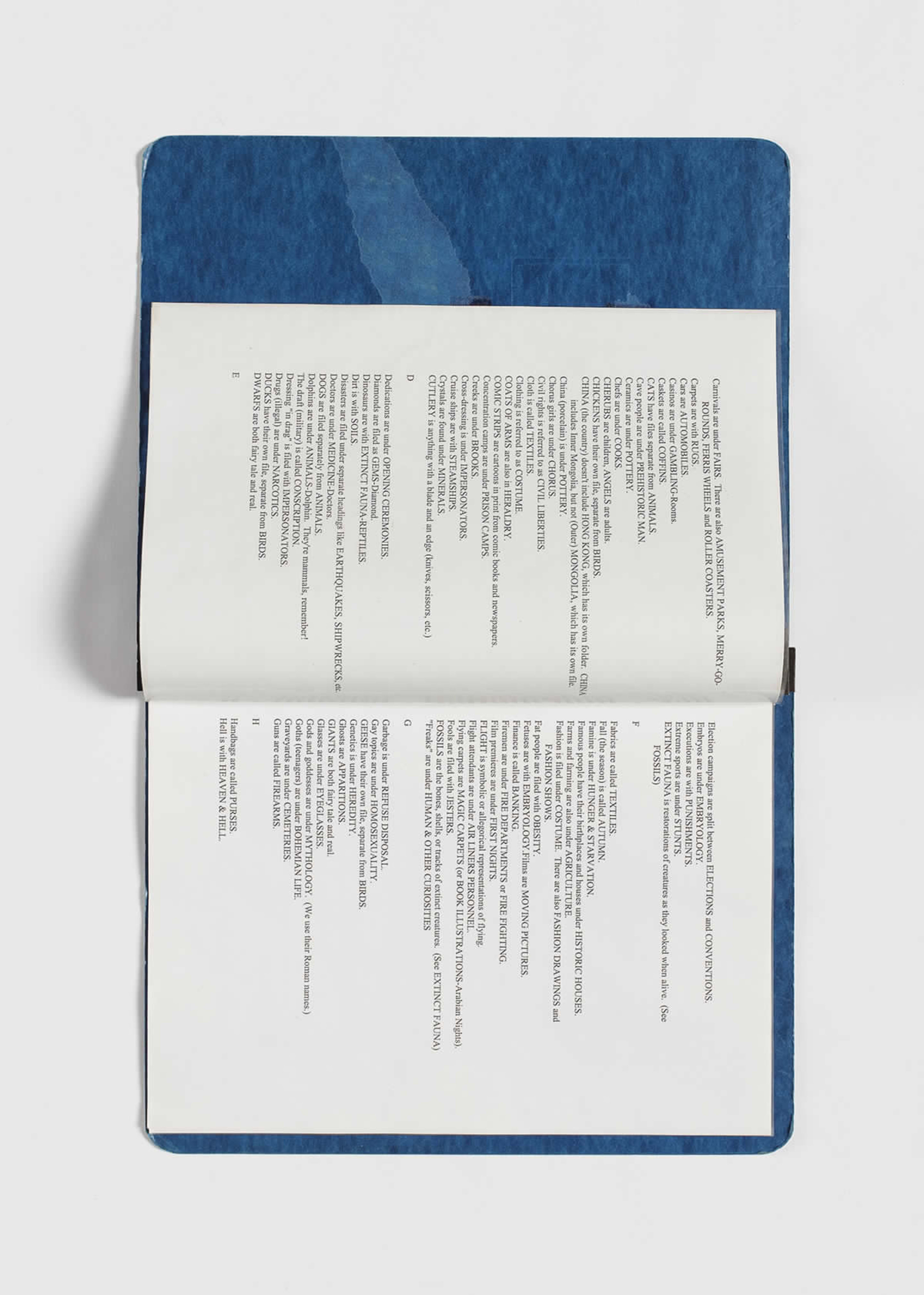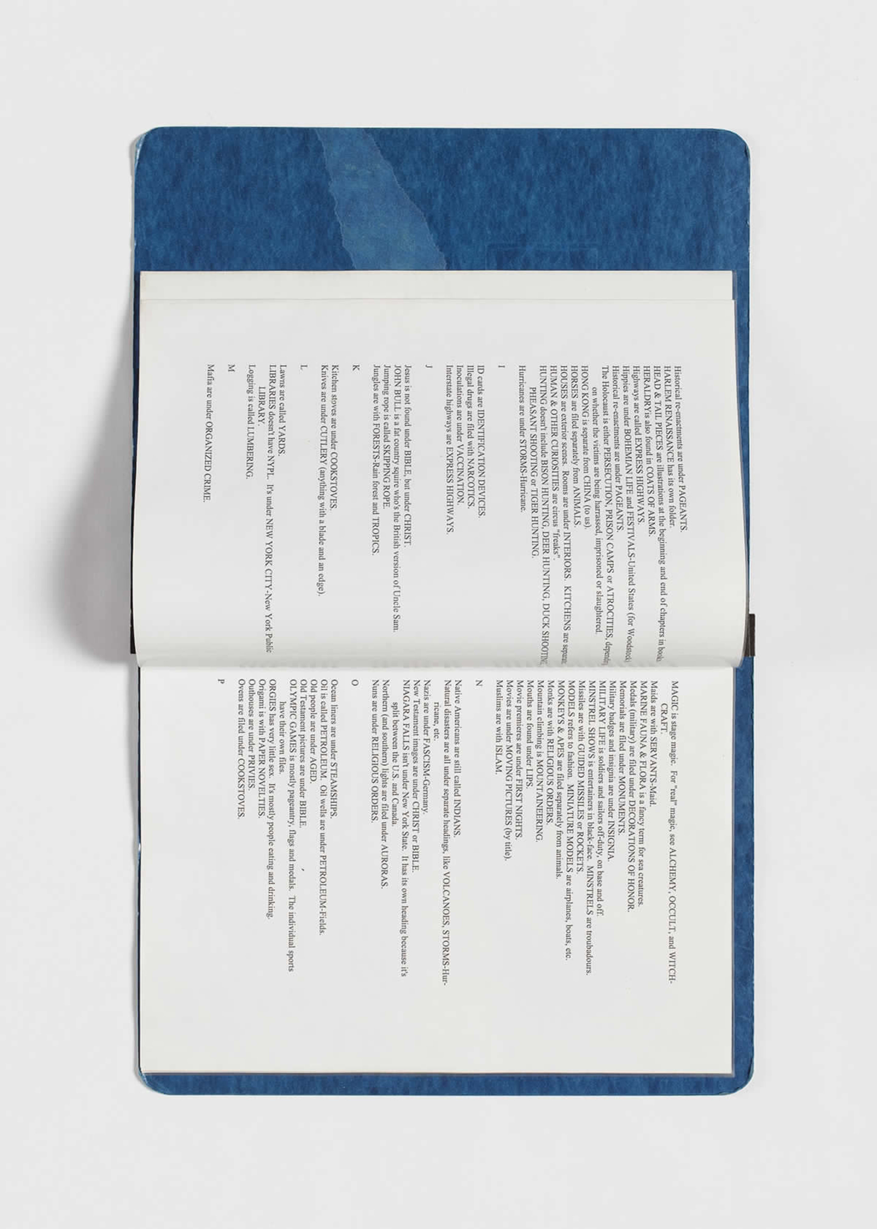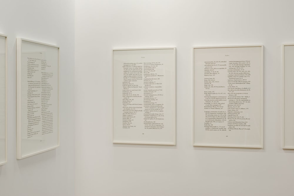 In the past two decades Alejandro Cesarco has been making art as well as publishing books and curating exhibitions. Using film, photography and text, Cesarco’s practice investigates the agency of meaning, and how the expression of that agency is embedded within the practices of writing and reading, translating and misreading, repeating and remembering. The formal strategies of Cesarco’s (isolating a footnote from its context, the ongoing compilation of indexes for an as-yet unwritten book, a video who’s narrative structure is based on secrecy, for example) are often marked by an emotional register, where affect colludes with language to produce a series of metanarratives in dialogue with the histories of Conceptual Art. In addition to his studio practice, the artist has curated several exhibitions and is director of Art Resources Transfer (A.R.T.), a nonprofit organization that publishes books by artists and distributes free books on art to public schools, libraries and prisons.