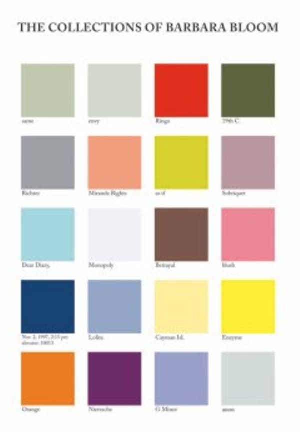 Bloom’s solo exhibitions include: Accord, Galleria Raffaella Cortese, Milan (2025); …The Whole Grand Pattern of Human Endeavor, Galerie Gisela Capitain, Cologne (2023); Works on Paper, David Lewis, New York (2021); The Weather, Kunsthal Aarhus, Denmark (2020); The Rendering (H X W X D =), Cleveland Triennial for Contemporary Art, Cleveland (2018); Two Artists Books by Barbara Bloom with Susan Tallman, Fleming Museum of Art, University of Vermont, Burlington (2017); The Weather, Galleria Raffaella Cortese, Milan (2016); Barbara Bloom: Framing Wall, Museum of Modern Art, New York (2015); As it were… so to speak, Jewish Museum, New York (2013); The Collections of Barbara Bloom, Martin-Gropius-Bau, Berlin (2008); Absence-Presence, Palazzo delle Papesse, Siena (2007); Never Odd or Even, Carnegie Museum of Art, Pittsburgh (1992); The Reign of Narcissism, Serpentine Gallery, London (1990); The Gaze, Stedelijk Museum, Amsterdam (1985).