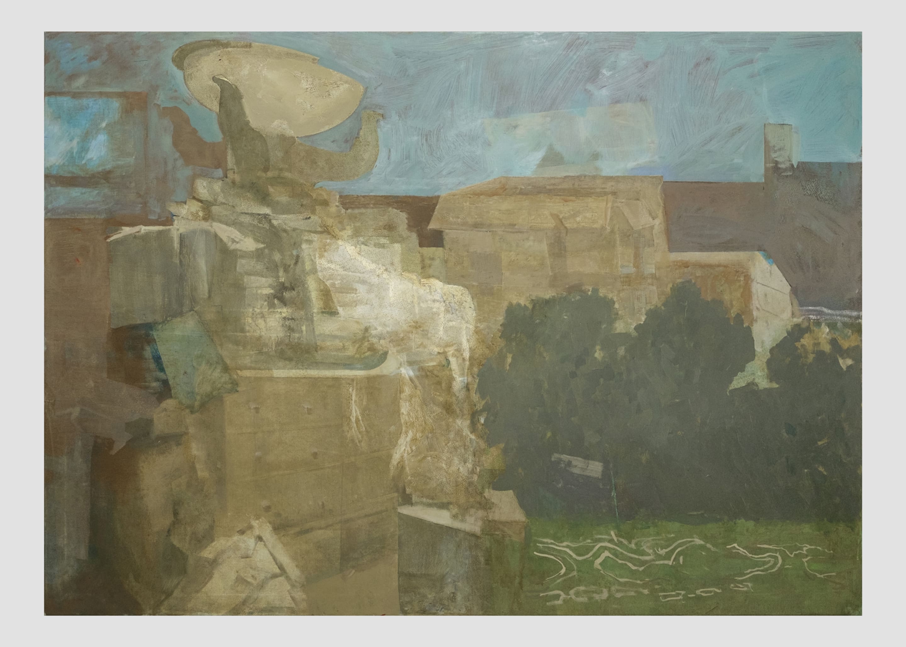 As an important figure of the Balkan art scene, Edi Hila has borne witness to the Social and political history of Albania. Through his life experience, sensitivity and painting he reached peaks of great poignancy. In spite of the intellectual isolation caused by the regime of Enver Hoxha, he attended the National Academy of Art in Tirana and managed to gain extensive knowledge of the art of XX century. After his artistic debut, during the seventies and eighties, he was forced by the regime to work in a government-run poultry processing factory as part of a reformation program. Only in the nineties – after the fall of communism in Albania – he returned to painting; defining the style and contents that still today distinguish his research. In his practice, time – historical and personal, photographic and pictorial – encounters space – exhibiting and personal, geographical and political. Hila’s creative process is comprised of multiple sessions over which the artist reworks details, parts of the composition, layering, passages. Each of his works becomes a “pictorial palimpsest” embracing, in a formal and chromatic synthesis, various stages of his life that led him to create a specific work.