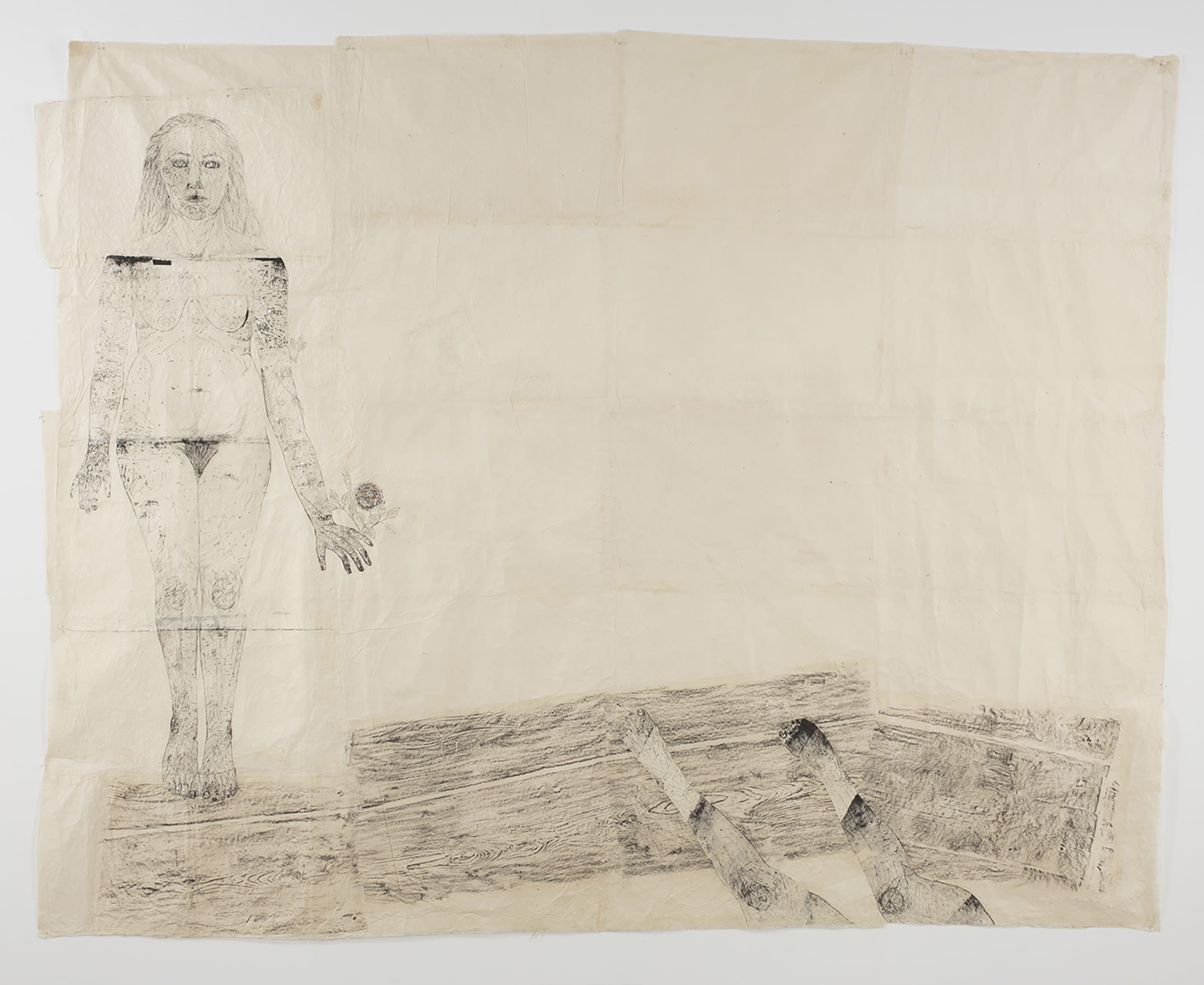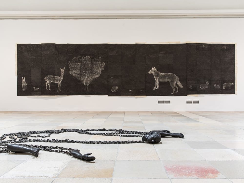 Smith is a New York-based artist and a leading figure in the international art world. The human form, especially the female body, became central to her work in the 1980s. She began to focus on the themes of loss and death through her depiction of the body’s internal components, especially organs, cellular structures and the nervous system. The evacuation of these physiological components from the body presented anxieties surrounding the maternal body and the notion of the body as a receptacle for incorporeal components such as knowledge, belief and storytelling. By exposing its internal structures, Smith portrays the dichotomy between the psychological and physiological spheres of the body. In recent years, Smith’s work has evolved to incorporate animals, domestic objects and narrative tropes from classical mythology and folk tales. Her career, spanning more than three decades, is characterized by great sperimentation with techniques and materials: she employs a wide-range of non-traditional materials ranging from hair and latex to beeswax and gold to a diverse body of media that includes painting, photography, bookmaking, sculpture, drawing, and printmaking.