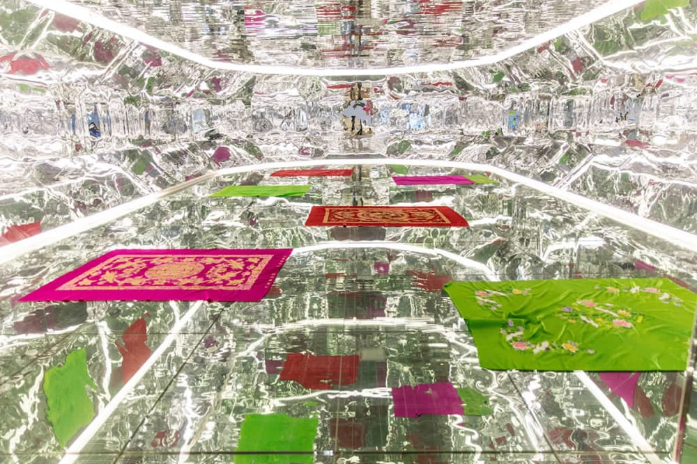 Kimsooja’s select solo exhibitions and site specific projects include: Kimsooja: Fukuoka Prize (Arts and Culture) Commemoration Exhibition: Kimsooja, Fukuoka Asian Art Museum, Fukuoka (2024); Le monde comme il va, Bourse de Commerce – Pinault Collection, Paris (2024); Thread Roots, Museum De Lakenhal, Leiden (2024); Desert X AlUla, Alula, Saudi Arabia (Site-specific Installation), (2024); Wrapping the Void, Sèvres National Manufactory and Museum, Sèvres (2024); To Breathe, Galeries Lafayette Haussmann, Paris (2023); To Breathe, Cathedrale de Metz, Metz (2022); To Breathe, Atrium Installation, LEEUM Samsung Art Museum, Seoul, Korea (2021); Sowing into Painting, Wanås Foundation, Wanås (2020); Traversées / Kimsooja, Poitiers (2019); Kimsooja: Archive of Mind, Peabody Essex Museum, Salem (2019); Zone of Nowhere, PICA – Perth Institute of Contemporary Arts, Perth (2018). Her work has been included in group exhibitions such as: Clapping with Stones: Art and Acts of Resistance, Rubin Museum of Art, New York, (2019); On the Spiritual Matter of Art, MAXXI, Rome (2019); Spinning ideas. Weaving art, IVAM Institut Valencià d’Art Modern, Valencia.