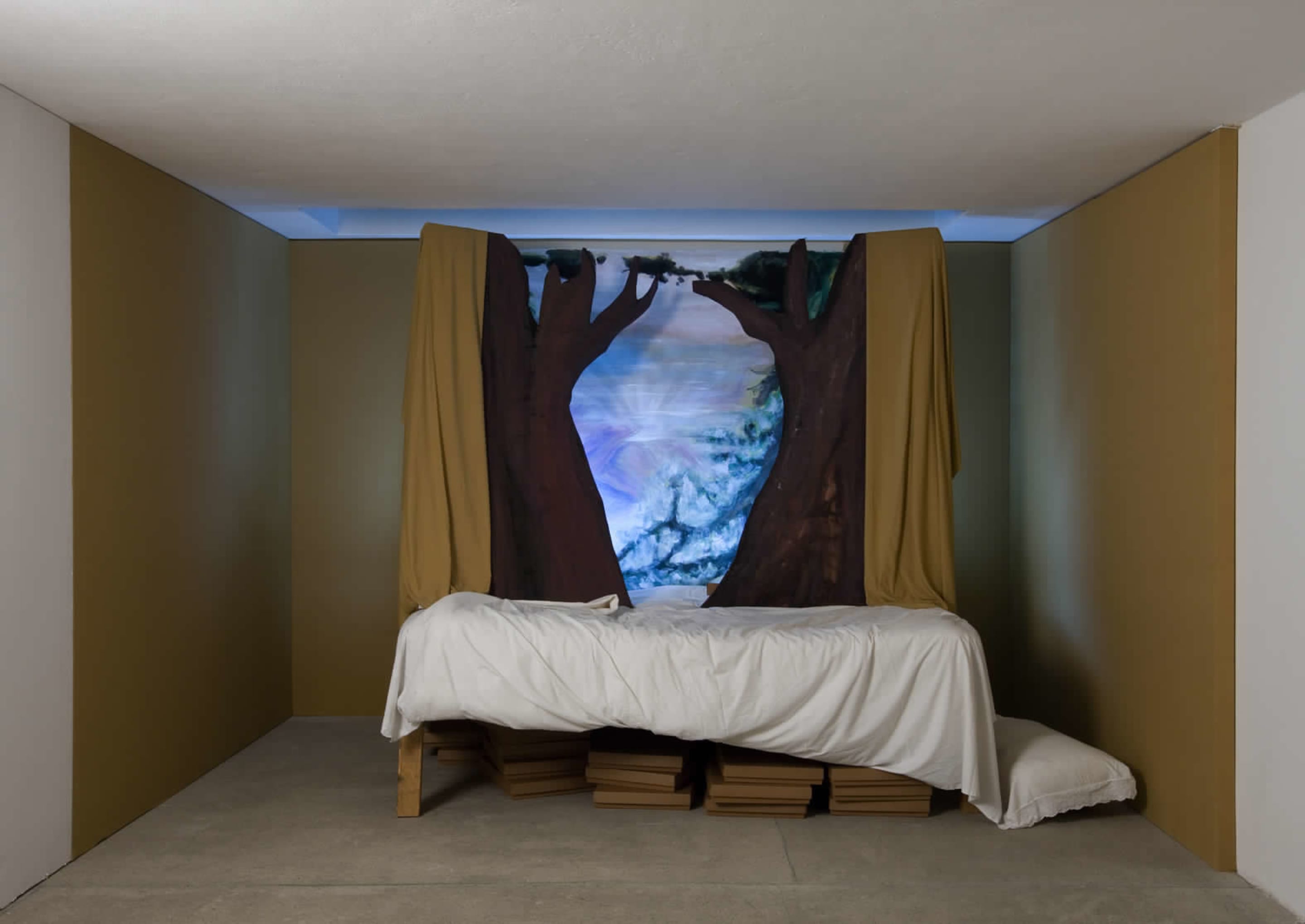 Through the combination of painting, film, dance and theatre, Rosier constructs dreamlike situations that allow the beholder to lose any sense of space and time, opening a portal between conscious and unconscious realms.