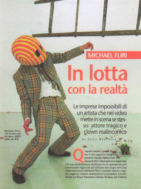 Fliri presents himself to the viewer and leaves them on their own, faced by changes. Masks and disguises have always been tied to concepts of changing and multiplicity; they unfold new possibilities, veil and unveil hidden aspects. Fliri’s actions allow for the construction of suspended reality, images so dense and poetic, so enigmatic and dreamy, account for the continuous and mutable flux to which everything is inevitably drawn, but first of all, they reach each one of us in our personal wish of metamorphosis.