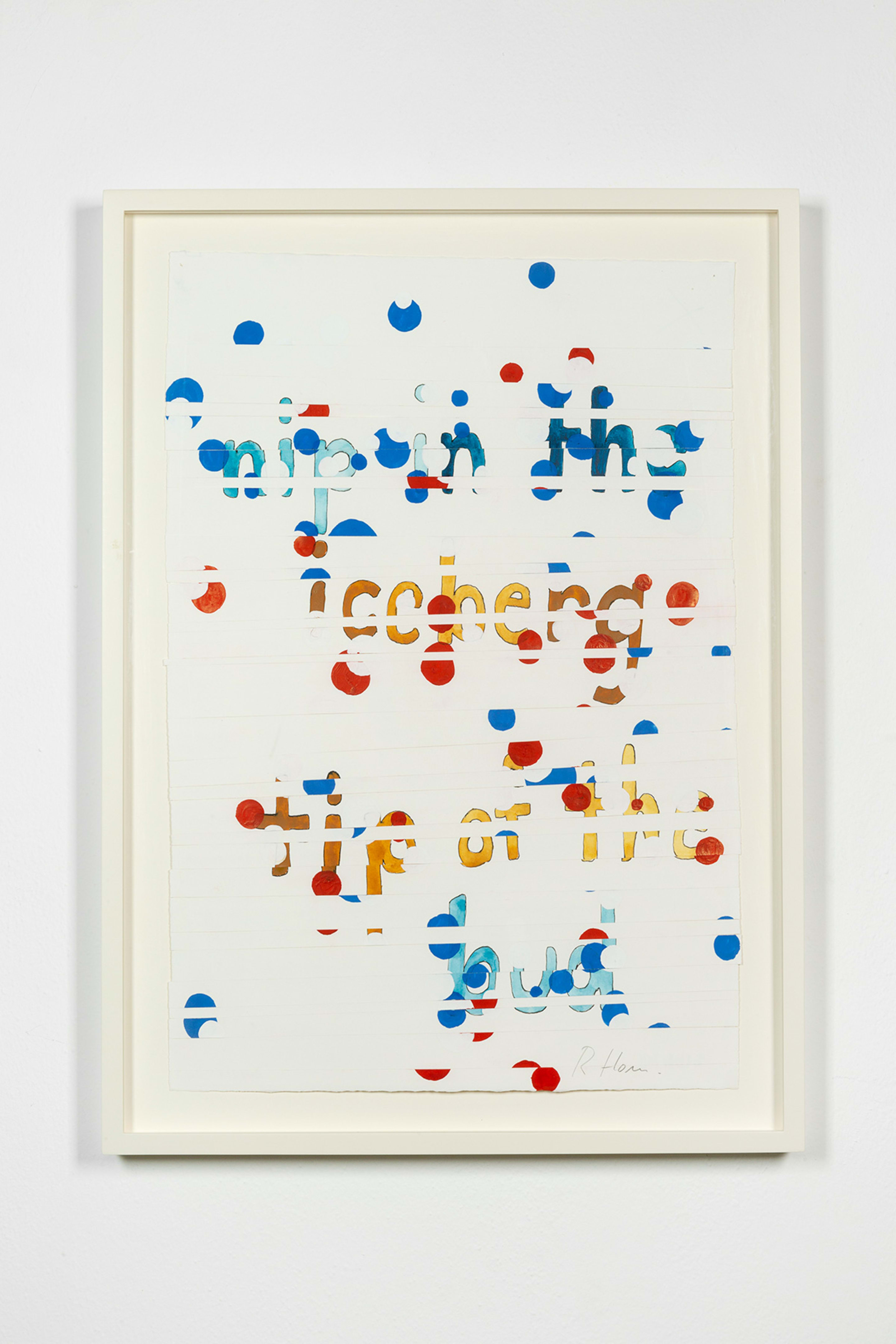Roni Horn has had solo exhibitions in the following museums: Louisiana Museum of Modern Art, Humlebæk, Denmark (2024); Museum Ludwig, Cologne, Germany (2024), Centro Botin, Santander (2023); Pola Museum of Art, Hakone, Japan (2021); Château La Coste, Aix-en-Provence, France (2021); The Drawing Institute at the Menil Collection (2019); Nasher Sculpture Center, Dallas (2017); Glenstone, Potomac, United States (2017); Fondation Beyeler, Riehen / Basel, Switzerland (2016); Fundacio Joan Miro, Barcelona (2014); FLAG Art Foundation, New York (2011); Center of Contemporary Art Ujazdowski Castle, Warsaw (2010); Whitney Museum of American Art, New York (2009); Rencontres d’Arles festival, Arles, France (2009); Tate Modern, London (2009); Tate Modern, London and Collection Lambert, Avignon (2008); Museion, Bolzano (2005), Art Institute of Chicago, Chicago (2004); Center Georges Pompidou, Paris (2003); Dia Center for the Arts, New York, and Museu Serralves, Porto (2001); Whitney Museum of American Art, New York; Kunsthalle Basel, Basel (1995). Group shows include: Whitney Biennial (1991, 2004); Documenta (1992); and the Venice Biennale (1997), among many others.