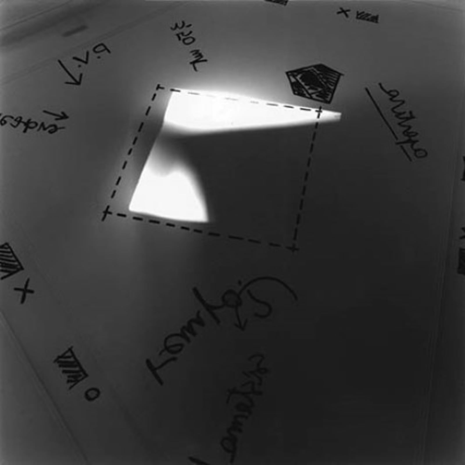 Angelo Candiano is a photographic artist who uses the camera itself very little, although he employs all the elements of photography: photosensitive paper, light, and the camera (a chamber, in Italian in its sense of piace or environment enclosed by walls). The artist works on the reduction of the image to obtain a minimal, abstract sign, often incorporating the third dimension.