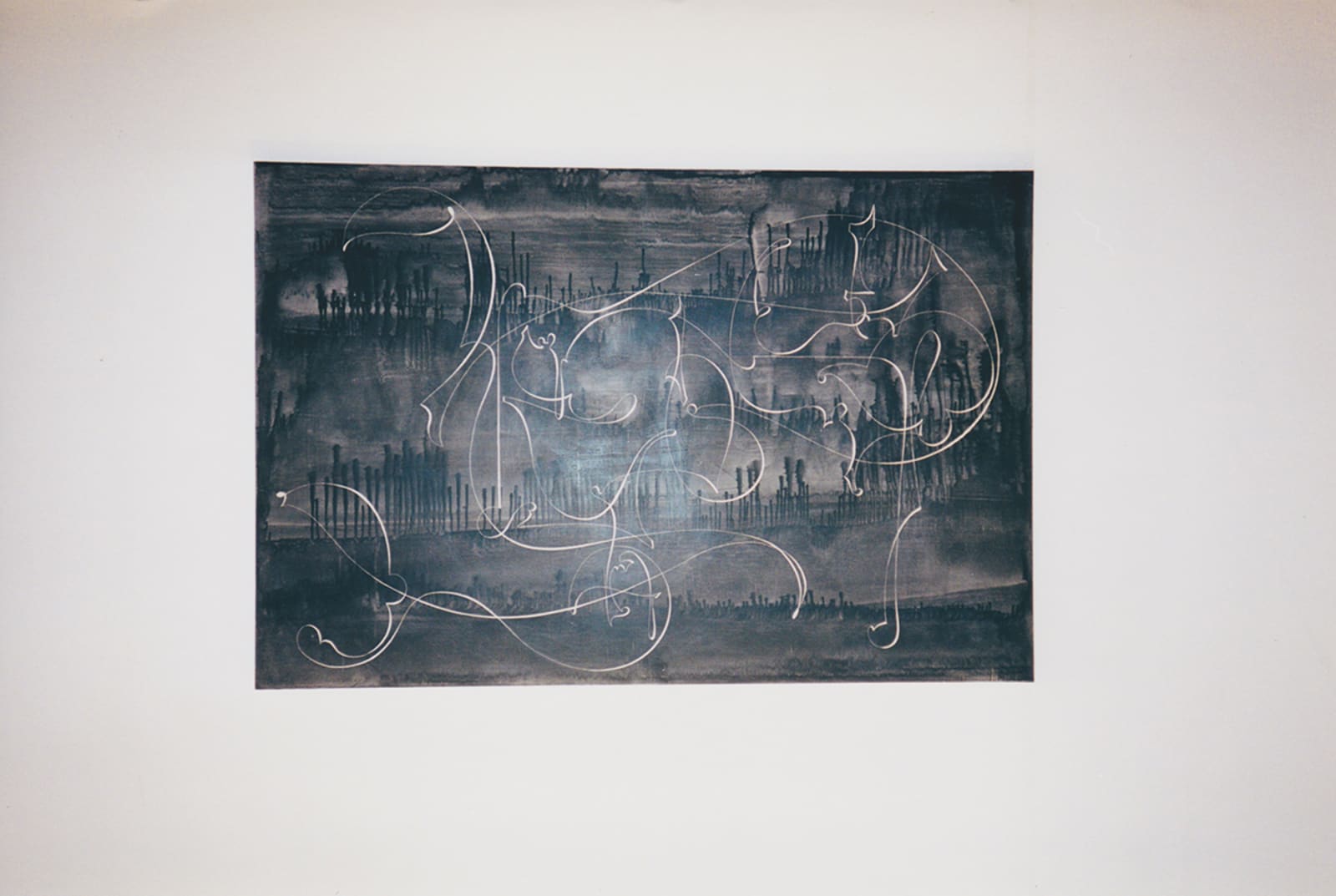 Working with a razor biade on wood panels, with a layer of gesso and then painted over with ink, the artist covers the surface with sparse traceries of calligraphic lines, not applied but revealed, as the ink is etched away to expo se the white gesso below. Her art comes out of an exploration of the impulses underlying language, changing the formai and aesthetic issues of writing into pictorial idiom. In these new works the lines are even more rarefied, the wood panels show a wider range of colours and the artist uses tondos as well as rectangular supports to frame her abstractions and to underline the content.