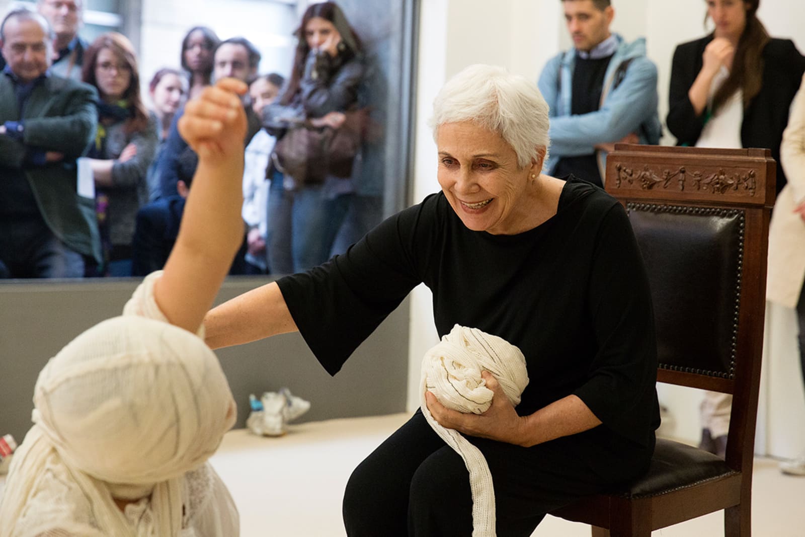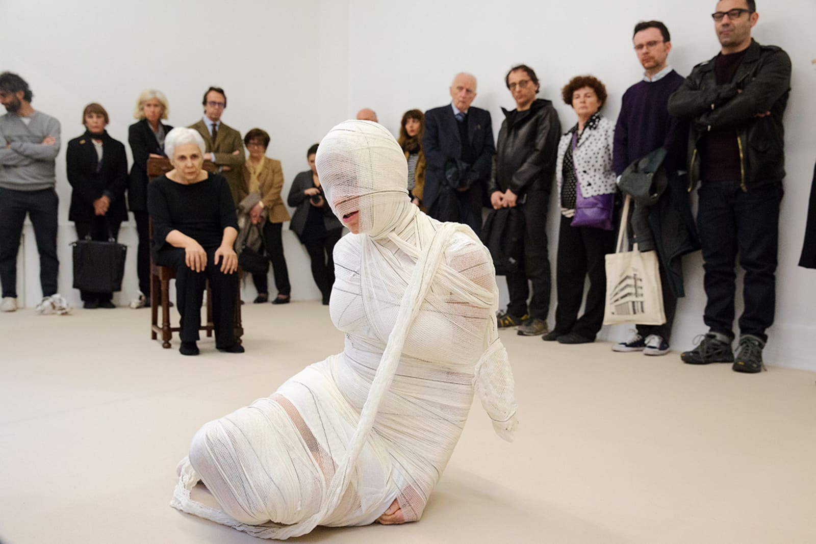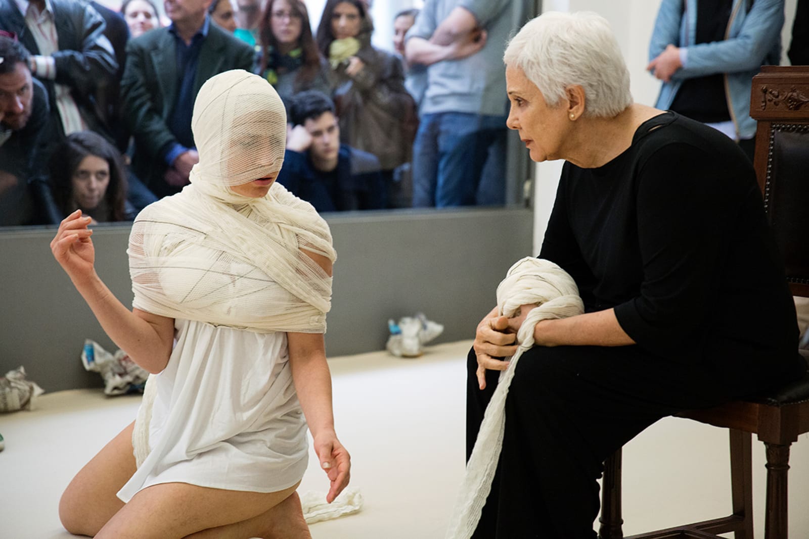 For Anna Maria Maiolino, the opening of the exhibition was the special occasion to present a new action titled in ATTO, several years after her latest performance, with artist Sandra Lessa as special guest.