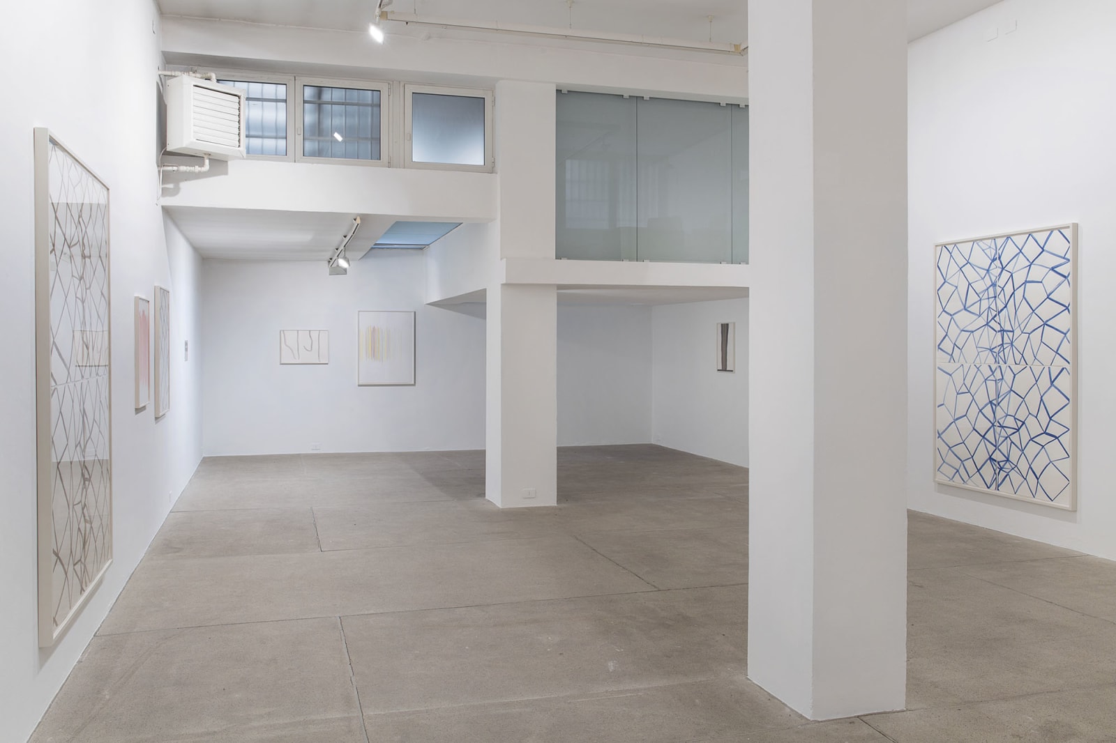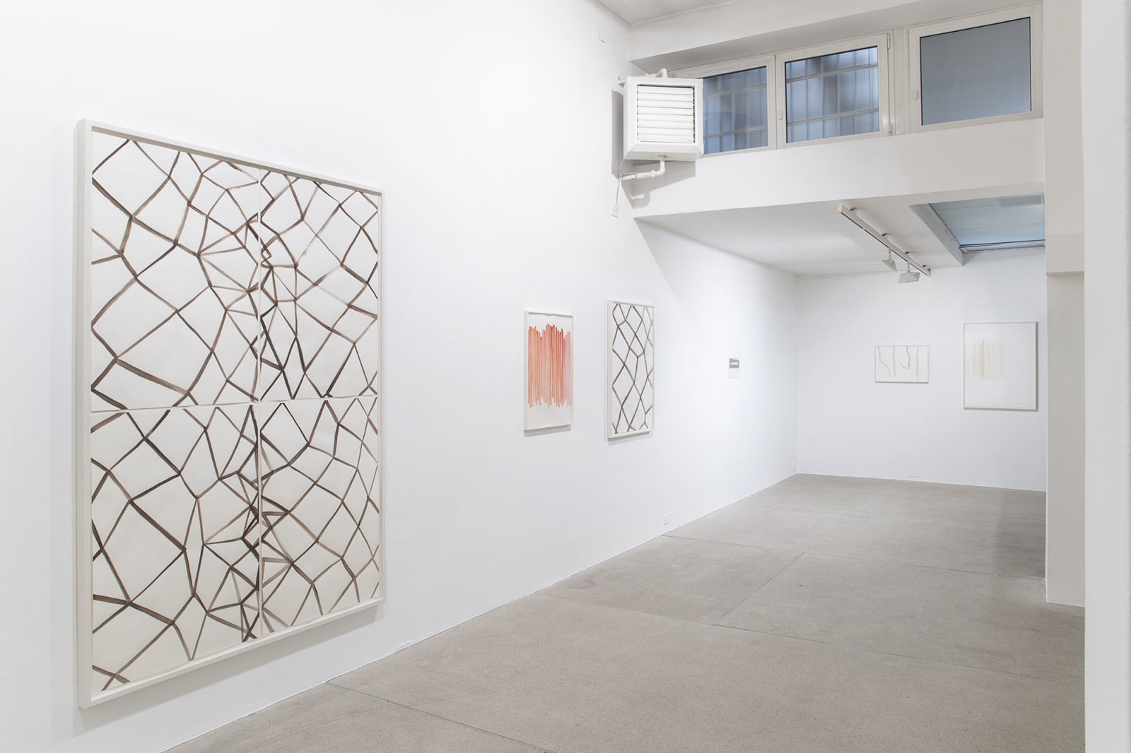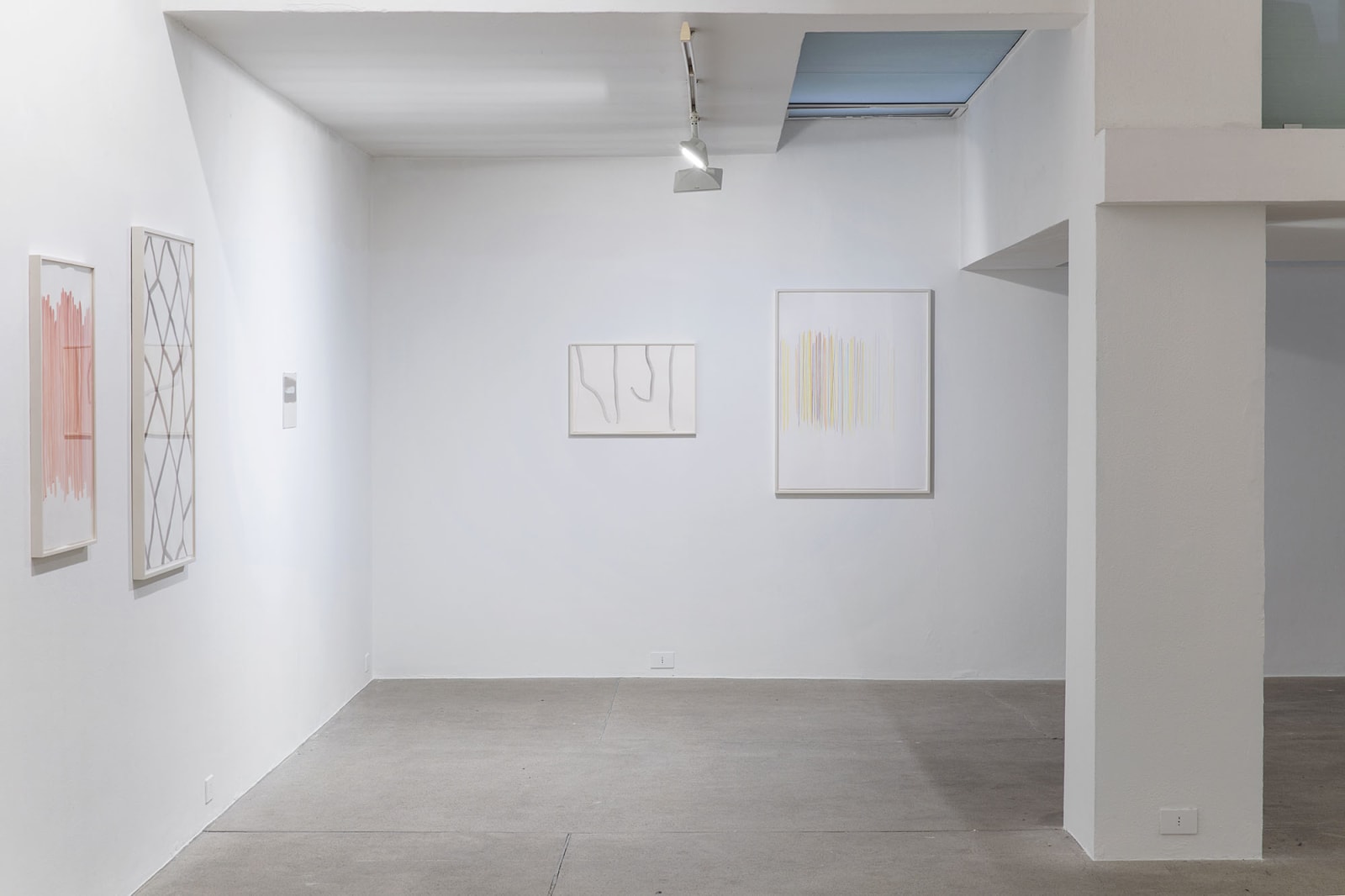 Over the years the artist has mainly created works on paper, experimenting with different techniques and formats and developing a formally immediate and minimal language hiding, however, a personal research on the line. The exhibited works, made between 2013 and 2015, show the latest developments of her work, in terms of both color and gesture.