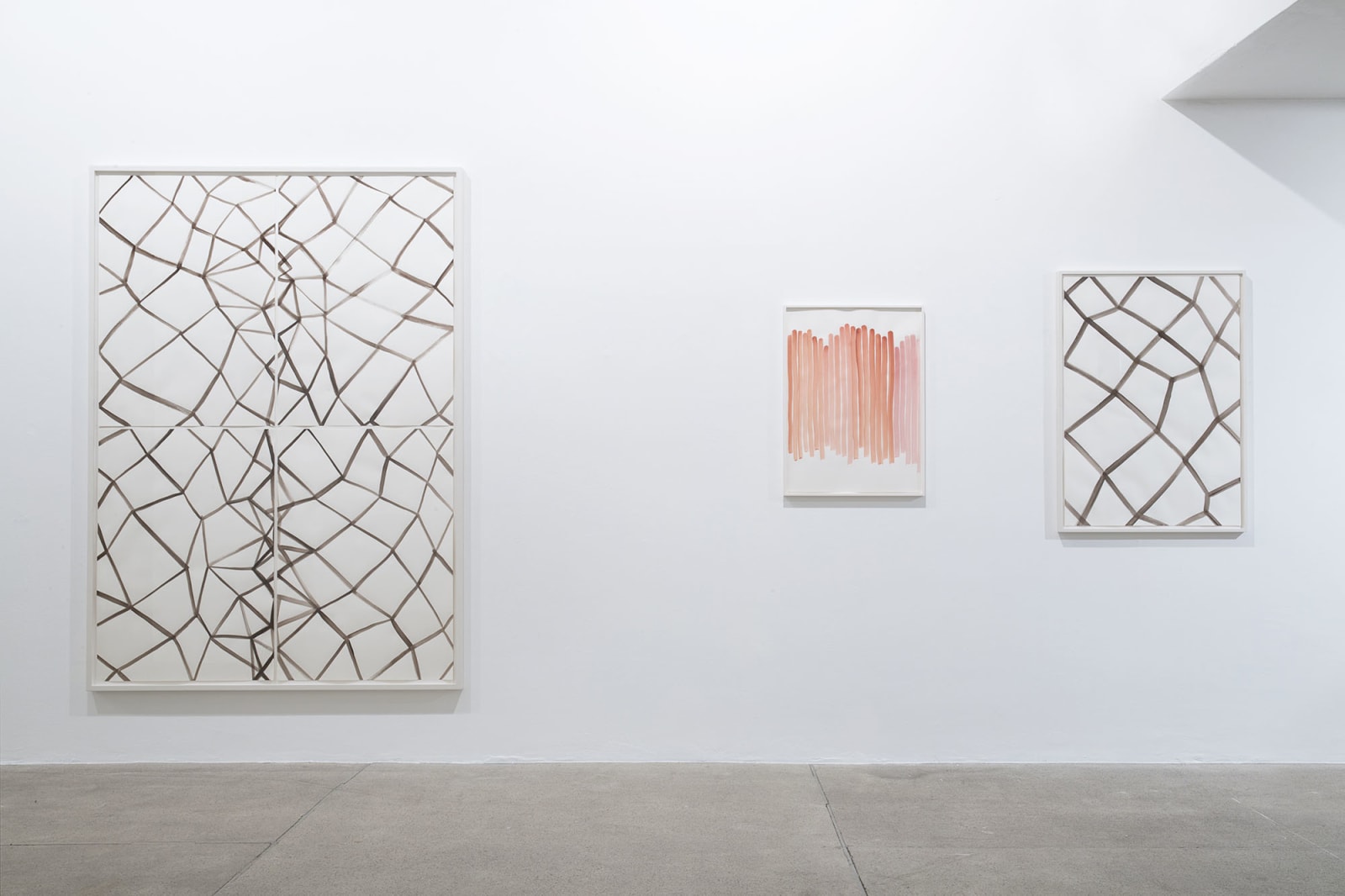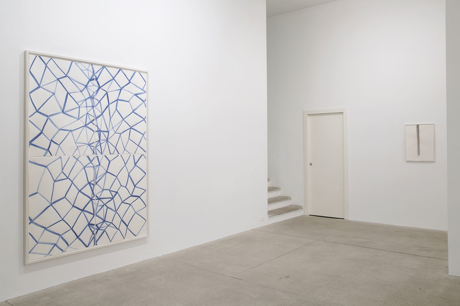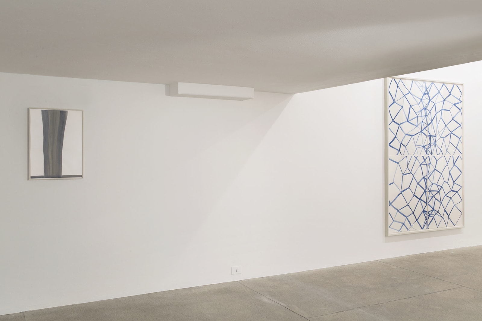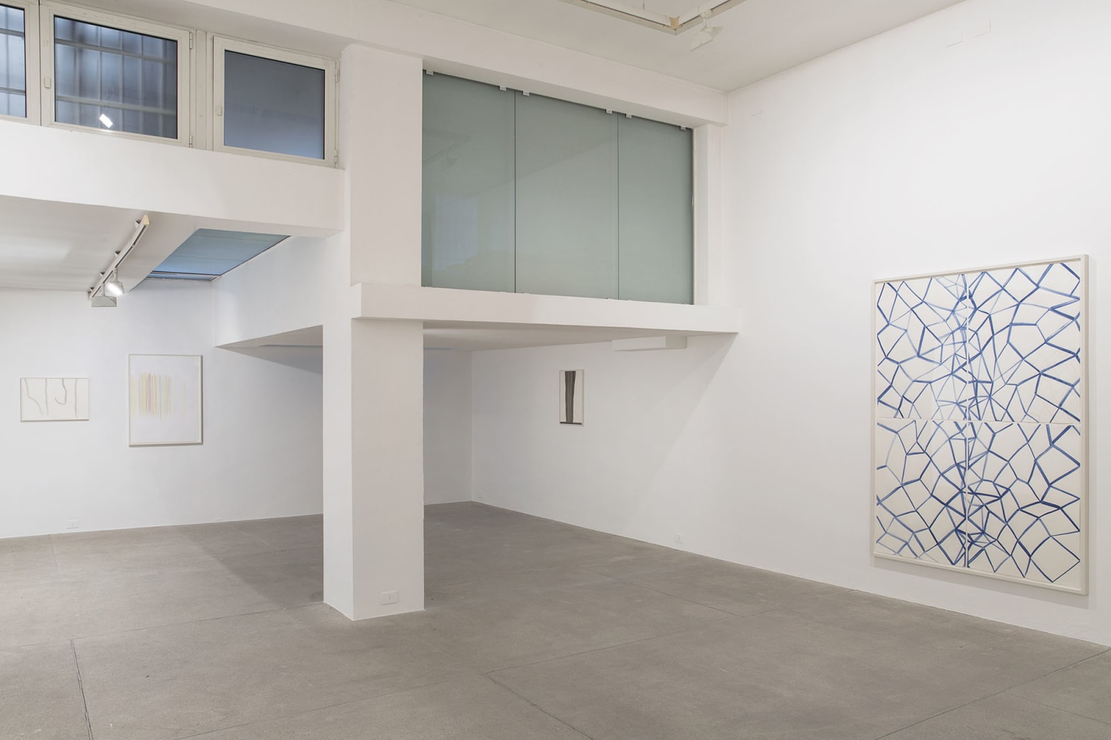 Over the years the artist has mainly created works on paper, experimenting with different techniques and formats and developing a formally immediate and minimal language hiding, however, a personal research on the line. The exhibited works, made between 2013 and 2015, show the latest developments of her work, in terms of both color and gesture.