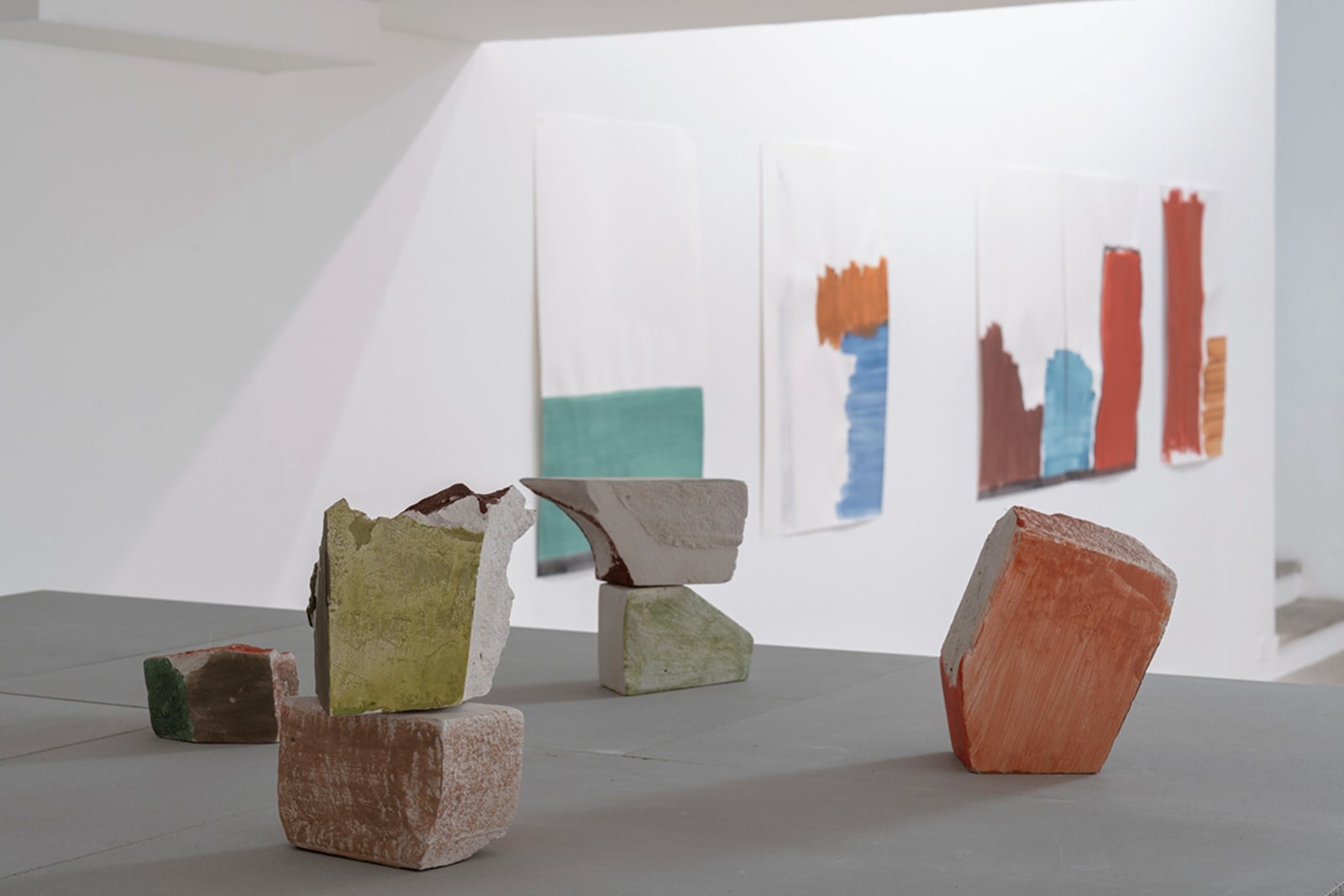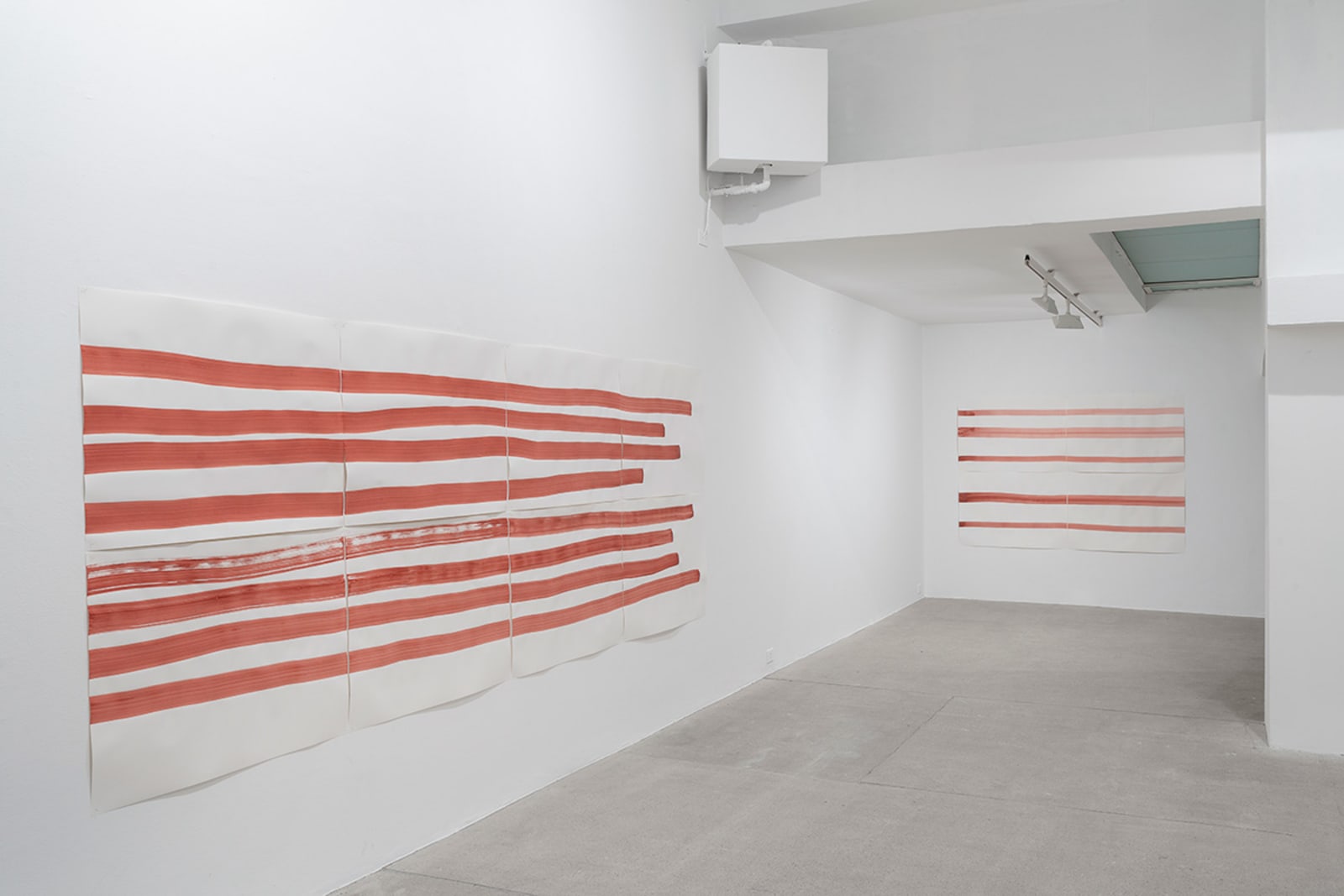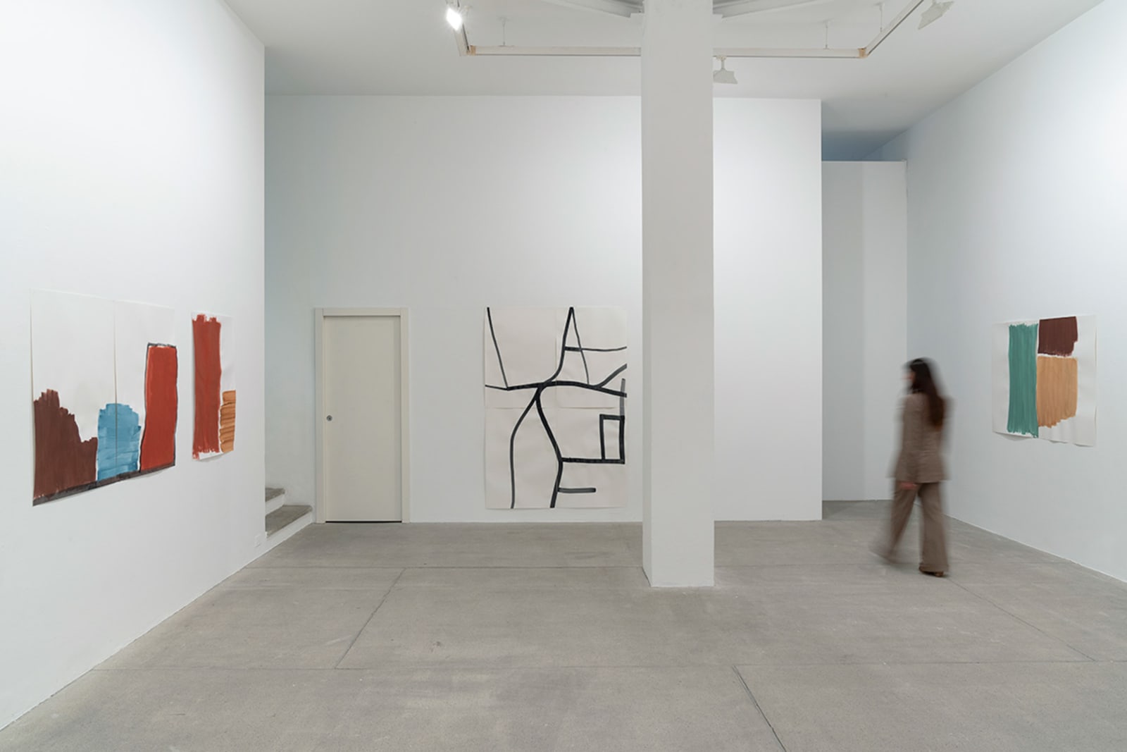 Drawing is the protagonist and common thread between the three solo shows by Silvia Bächli, Jessica Stockholder, and Allyson Strafella on view at Galleria Raffaella Cortese from May 20, 2021. Each artist has developed their own drawing practice differently, but with the shared desires to cross the boundaries of the sheet of paper, as well as overcome the limits of the frame and of the two-dimensional surface. The medium, in all three exhibitions, takes on a dimension of installation and expresses a desire for osmosis with the spaces it inhabits.
