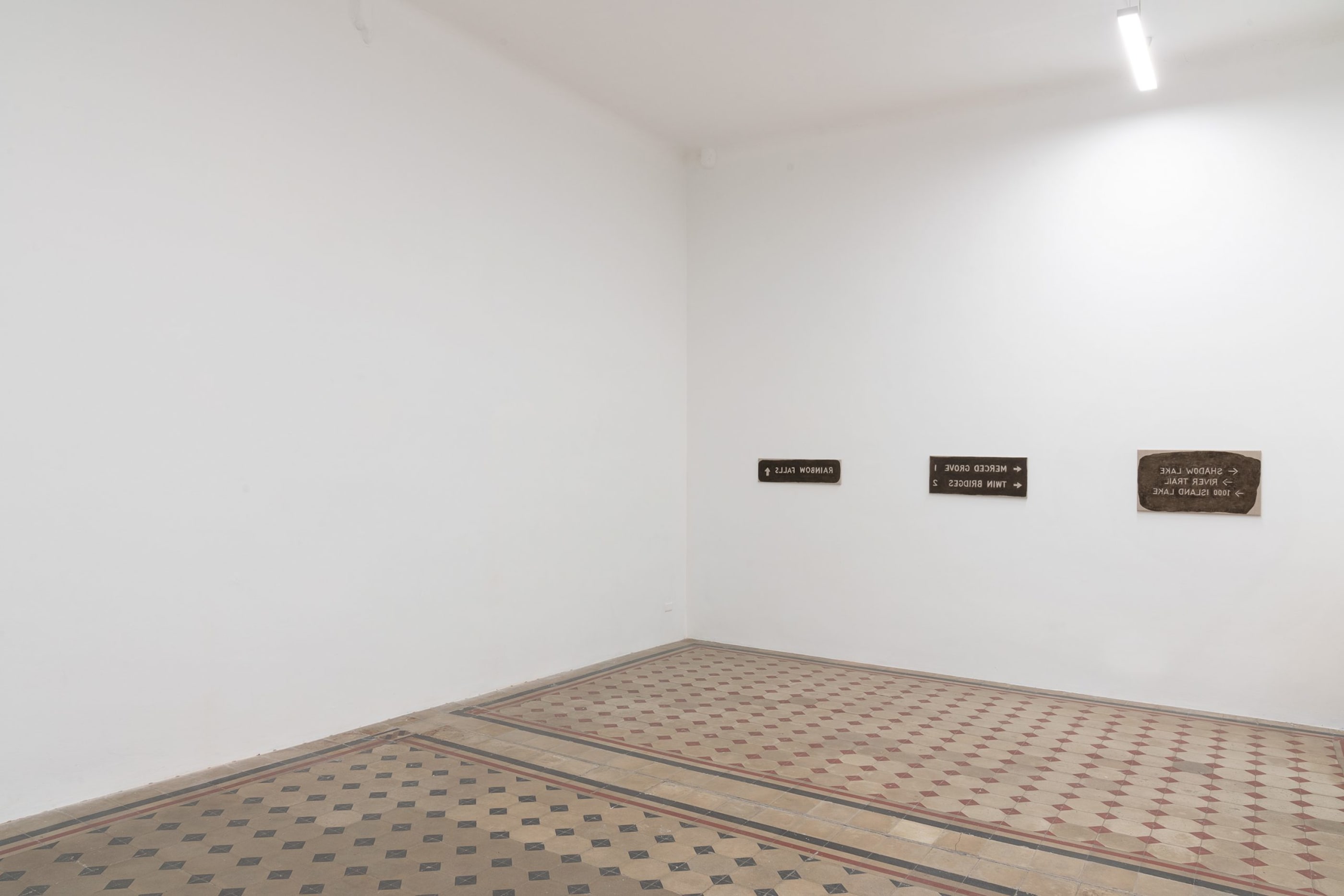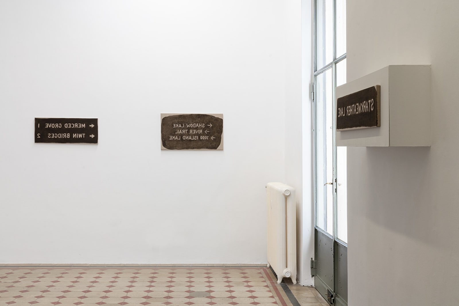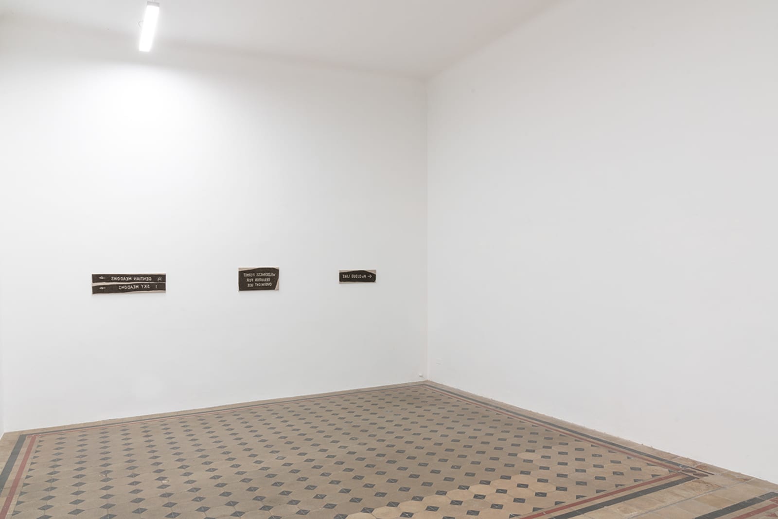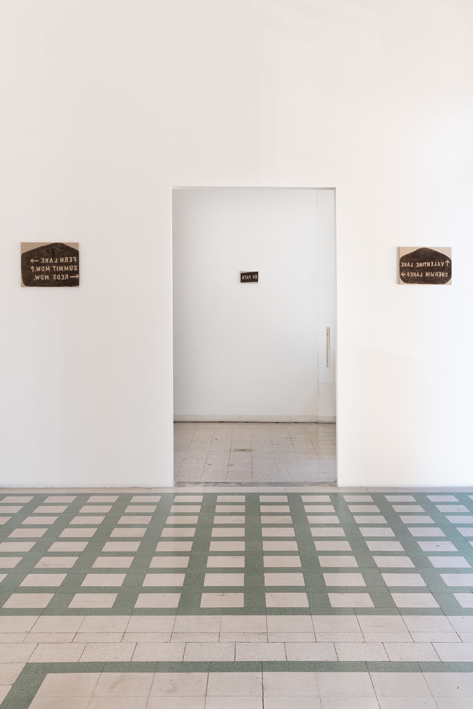 these reversed, hand-lettered, at-scale paintings are none of those things.