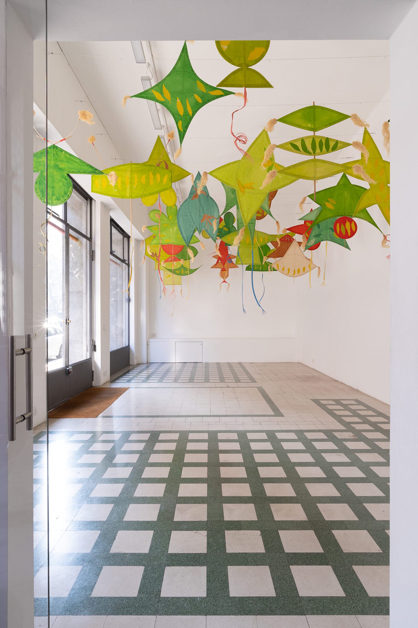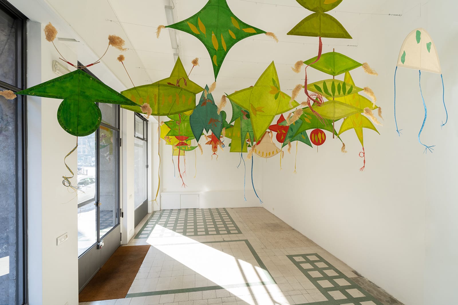 Joan Jonas is a founding figure of performance, video, and installation who has relentlessly pushed the boundaries of contemporary art in over five decades of artistic practice. For her third solo exhibition with Galleria Raffaella Cortese, Jonas presents Draw on the wind in the space at via A. Stradella 1. This large installation of colorful kites premiered at the Carnegie Museum of Art in Pittsburgh as part of the 57th Carnegie International (2018) and is shown at the gallery for the first time in Italy.