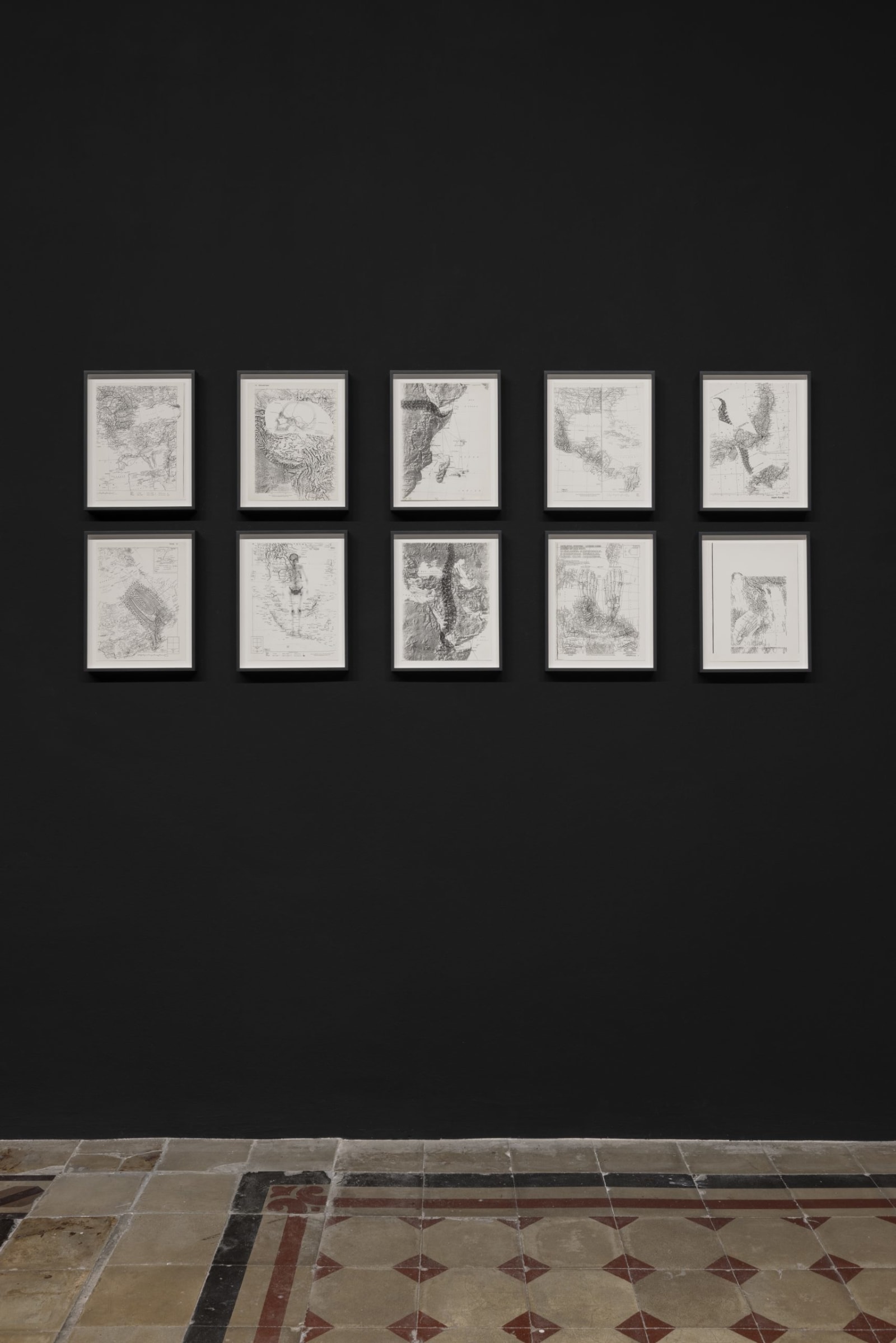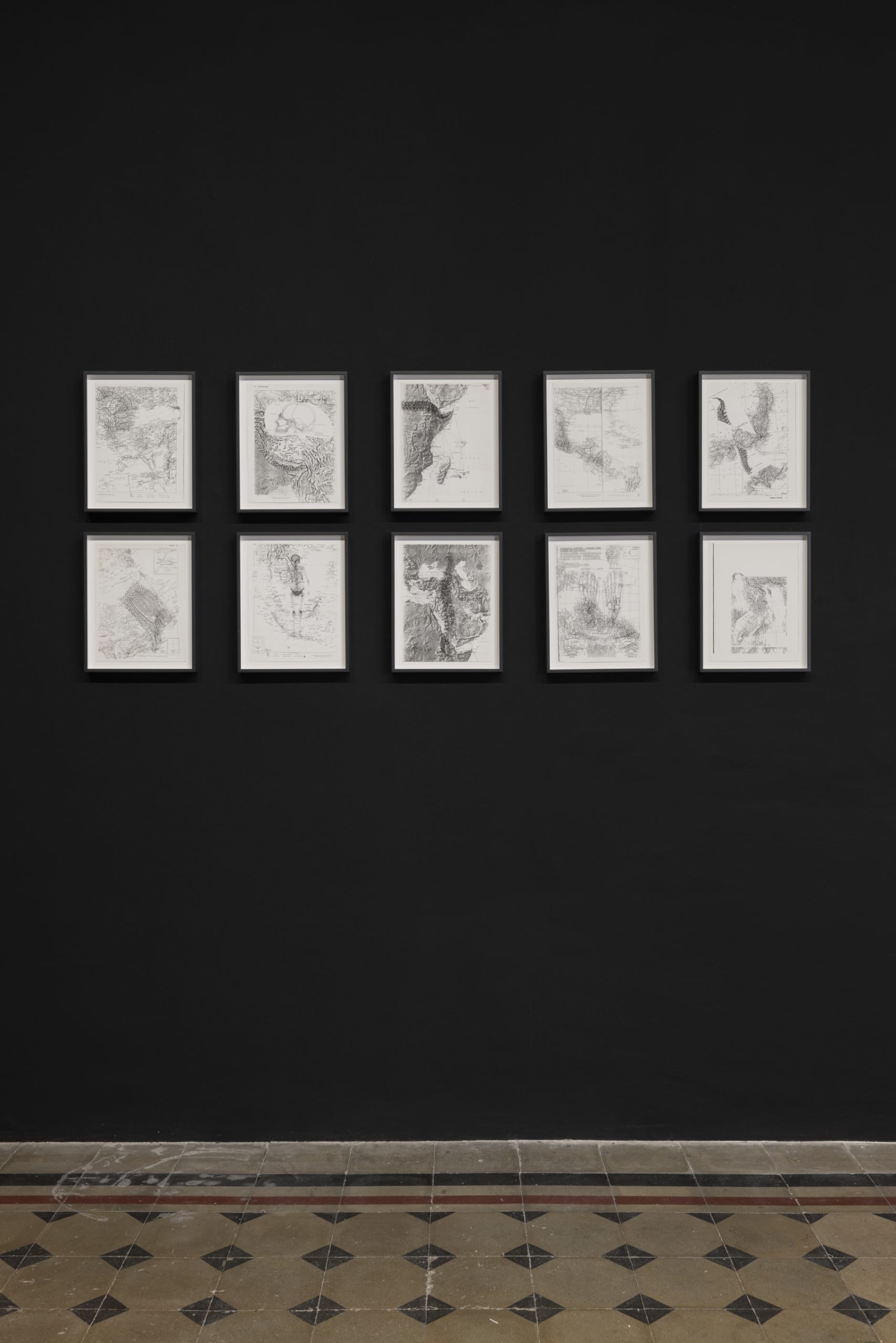 Works from the series Anatomy Maps (1985), where the close correlation between body and world – and, therefore, belonging – is evident, will be on view at Via Stradella 4. These works are the result of the experimental anatomy studies carried out by Simone Forti together with Anna Halprin, an occasion that gave the artist the opportunity to study in a detailed and tactile way the skeleton in its astonishing complexity and above all the way in which it is glued to the muscles and connects to the other components of the body, detecting an atavistic similarity with the earth and superimposing the cavities of the bones to the infinite paths of the globe.