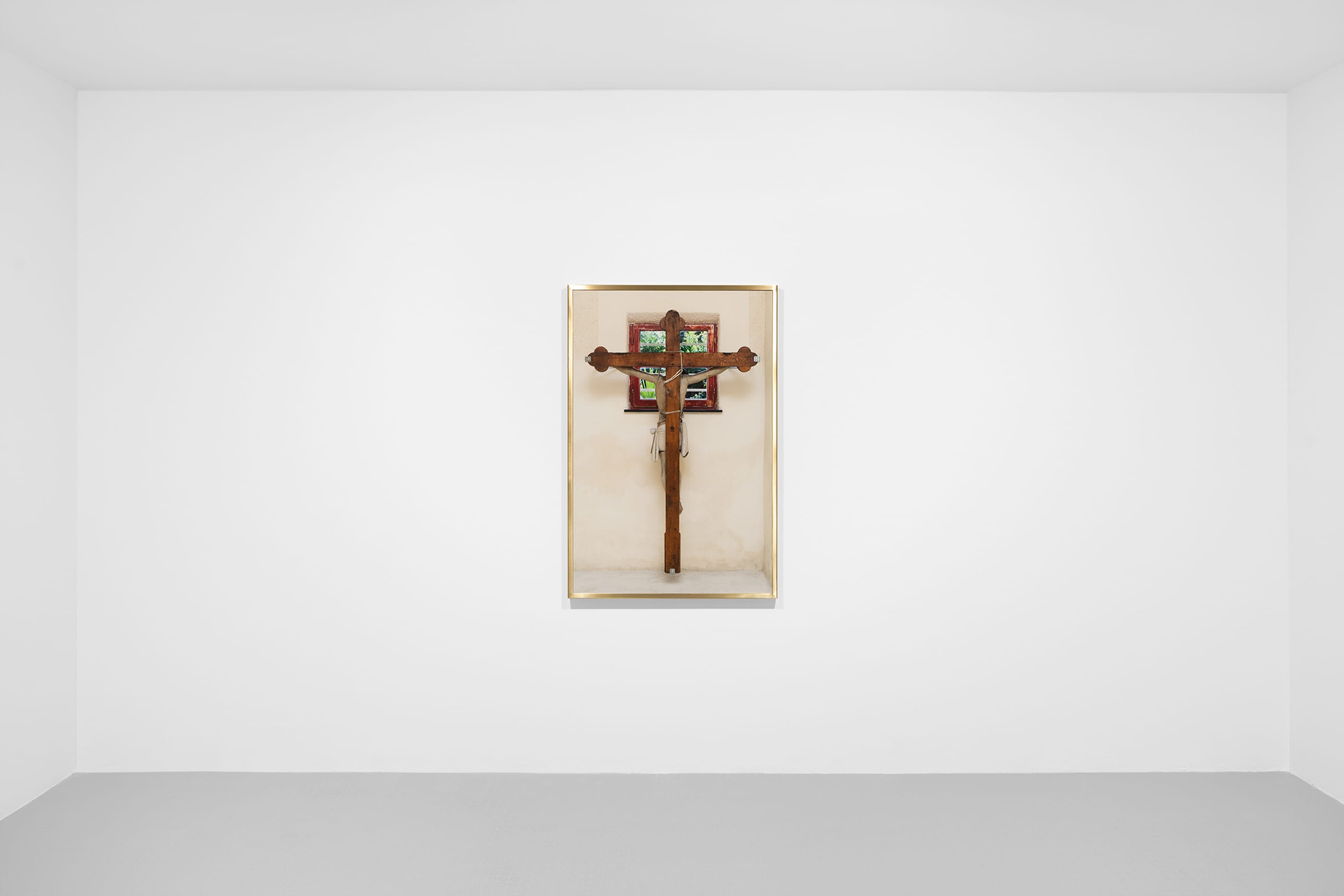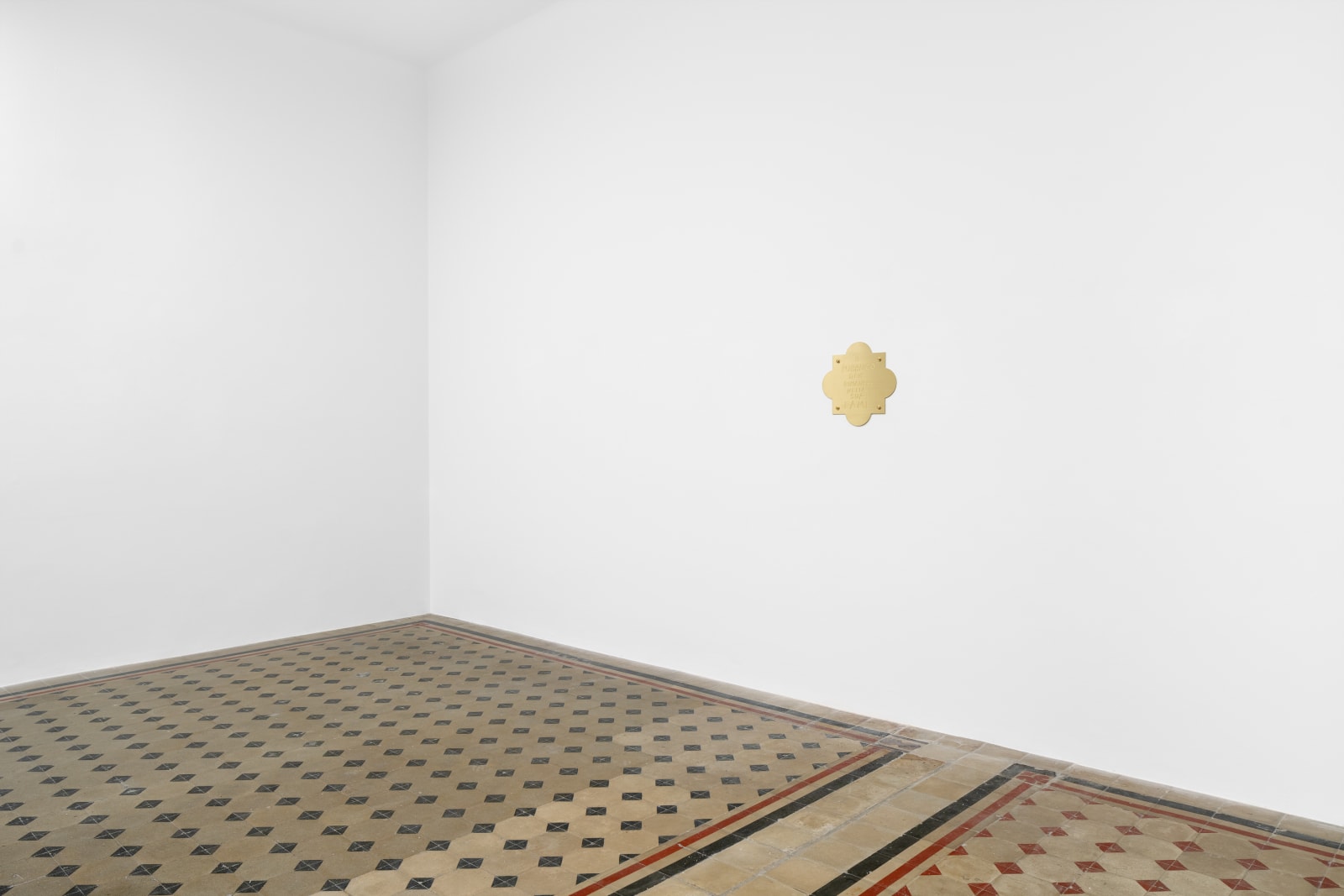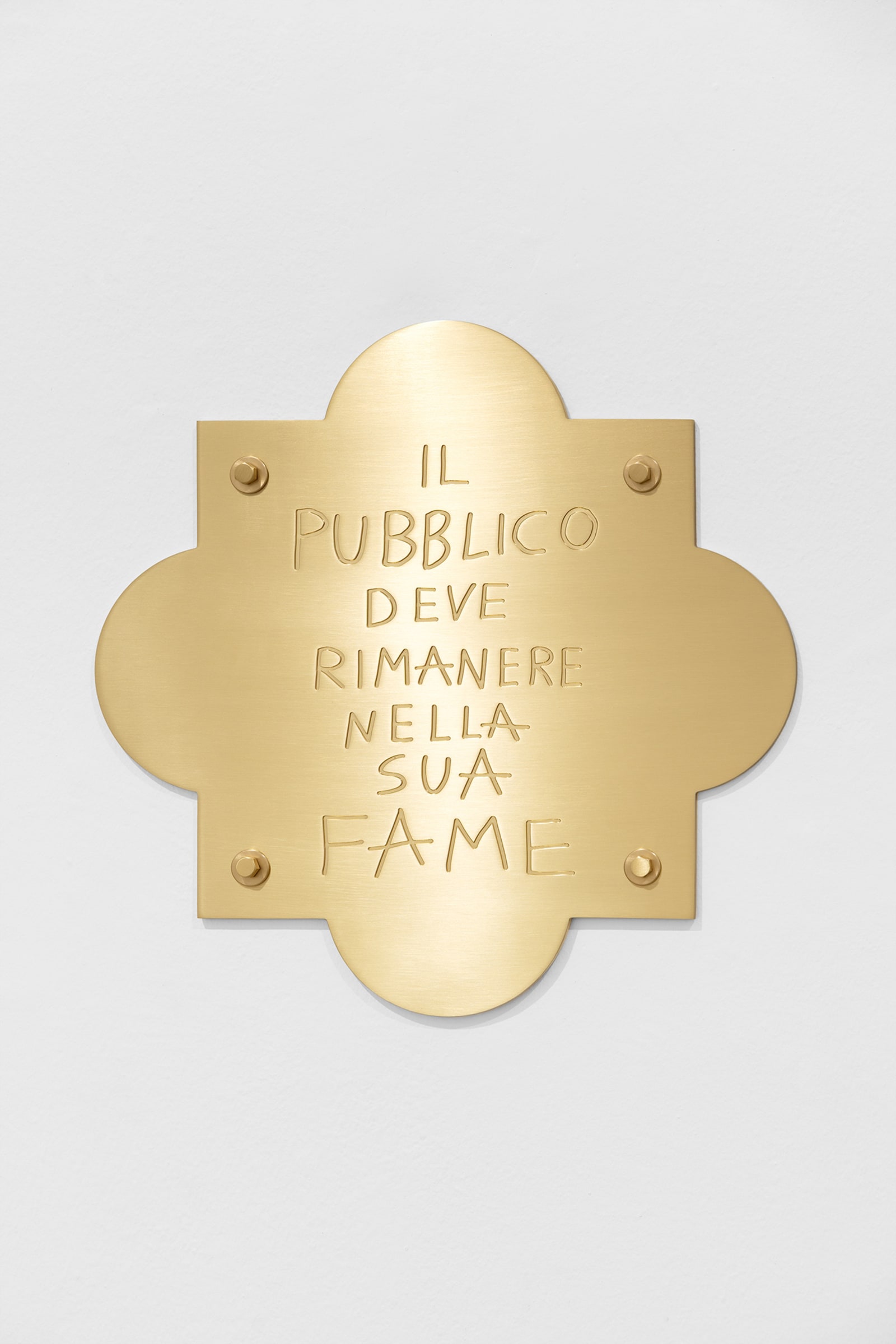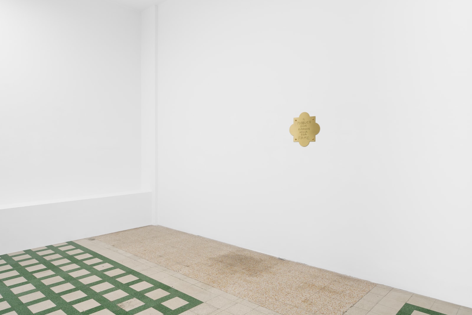 In Milan, in each of the three environments, a single brass plaque – echoing the baroque shapes of the stations along the Way of the Cross – is engraved with an original phrase from the Martellate series. The phrase, which is the same in every location, does not multiply, but rather it insists. The work remains unchanged; what shifts is the gaze, guiding the visitor-performer through the stations of a non-linear Via Crucis without destination.