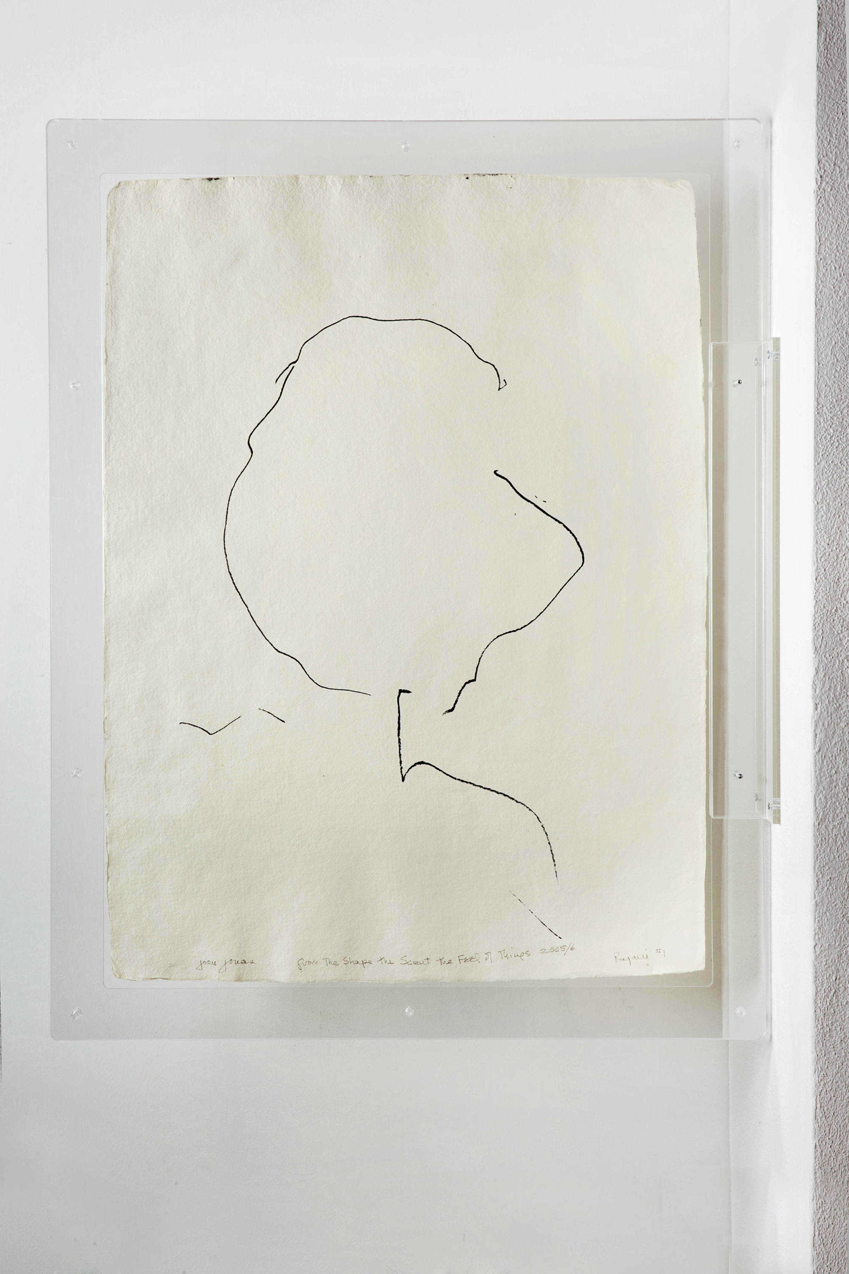 Originally presented as a performance at Dia:Beacon with original piano score by Jason Moran, Joan Jonas created the installation The Shape, the Scent, the Feel of Things (2004-2006) in response to writings by German art historian Aby Warburg about his visit to the American Southwest in 1896. The two video works and the drawing presented below relate to this project. Jonas’ video works, which often evolve alongside her performances and installations, exemplify the artist’s unique approach to non-linear narration and circular repetition, renewed and ever different in each of her films as well as in her entire body of work.
