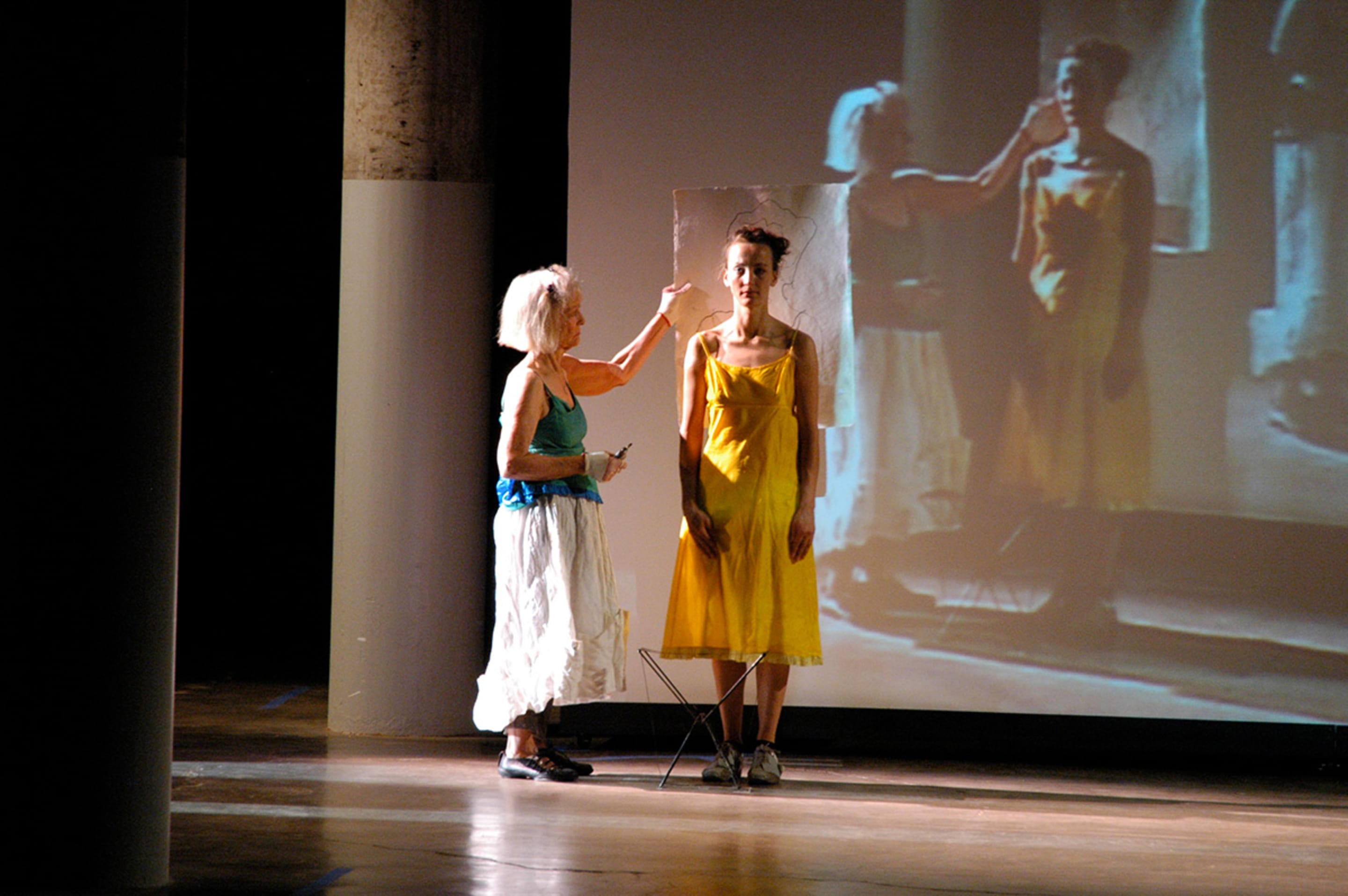 Reading Dante IV draws inspiration from Dante’s fourteenth-century Divine Comedy, a reoccurring topos of Jonas’s work since 2007. Each performance and installation becomes increasingly layered as the work transforms and develops. The first installation and performance of Reading Dante was at the 2008 Biennale of Sydney. Later that year Jonas performed the work at the Yokohama Triennale, and also performed a reading at The Isabella Stewart Gardner Museum in Boston, from which filmed excerpts are now incorporated into the current Dante video. Jonas was featured in the International Pavilion of the 2009 Venice Biennale where she installed Reading Dante II. Most recently, the artist presented Reading Dante II at the Performing Garage in New York as part of Performa ’09, and selected elements of this performance are featured in Reading Dante III and reviewed in the Italian Reading Dante IV.