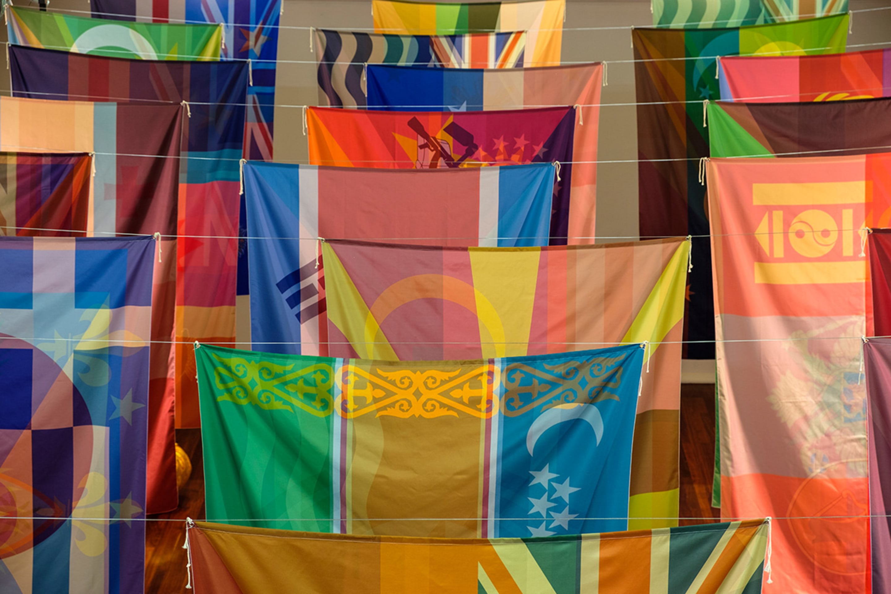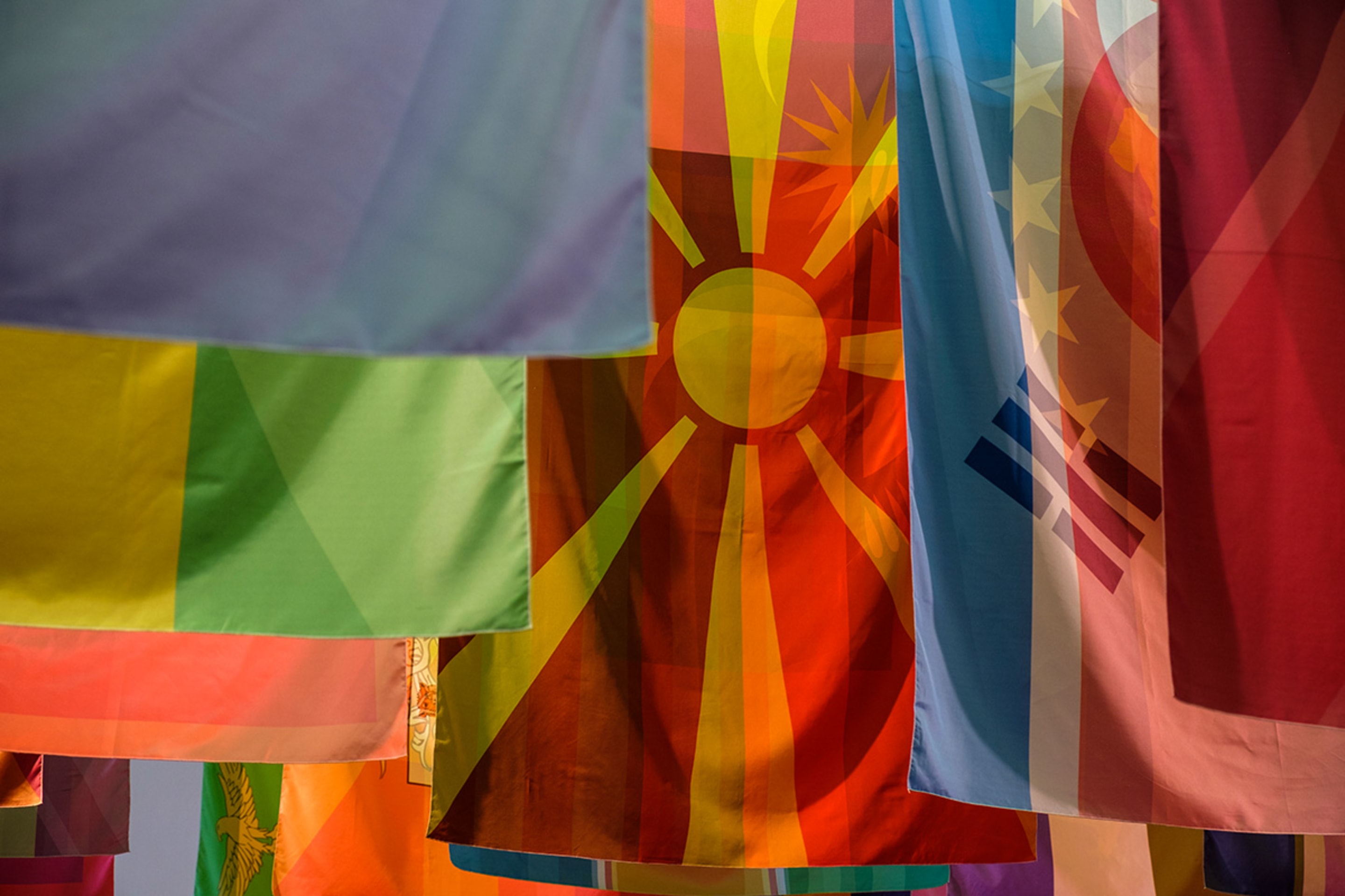 To Breathe – The Flags includes flags from nations that are not internationally recognized, such as Scotland or Tibet, as well as nations whose flags are forbidden in other countries, such as North Korea. In merging the flags without restriction, the work provides a representation of the new nations or non-nations within its compressed layers, briefly dissolving their discrepancies and blurring their national identities. In the first iteration of this work, which was commissioned by the IOC Olympic Museum for the London 2012 Summer Olympics, the artist layered flags of all the participating countries in a reflection of the unifying spirit of the games.