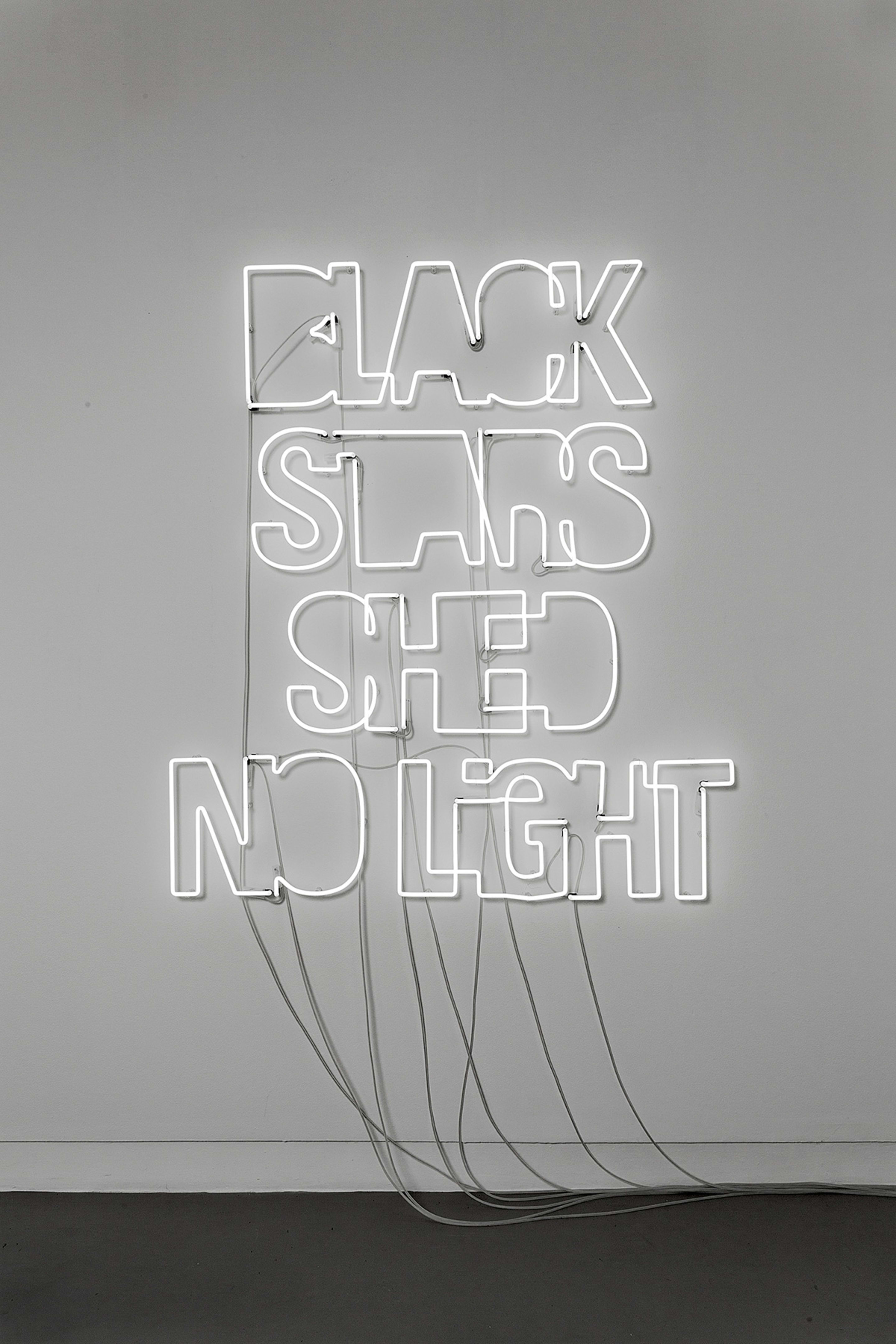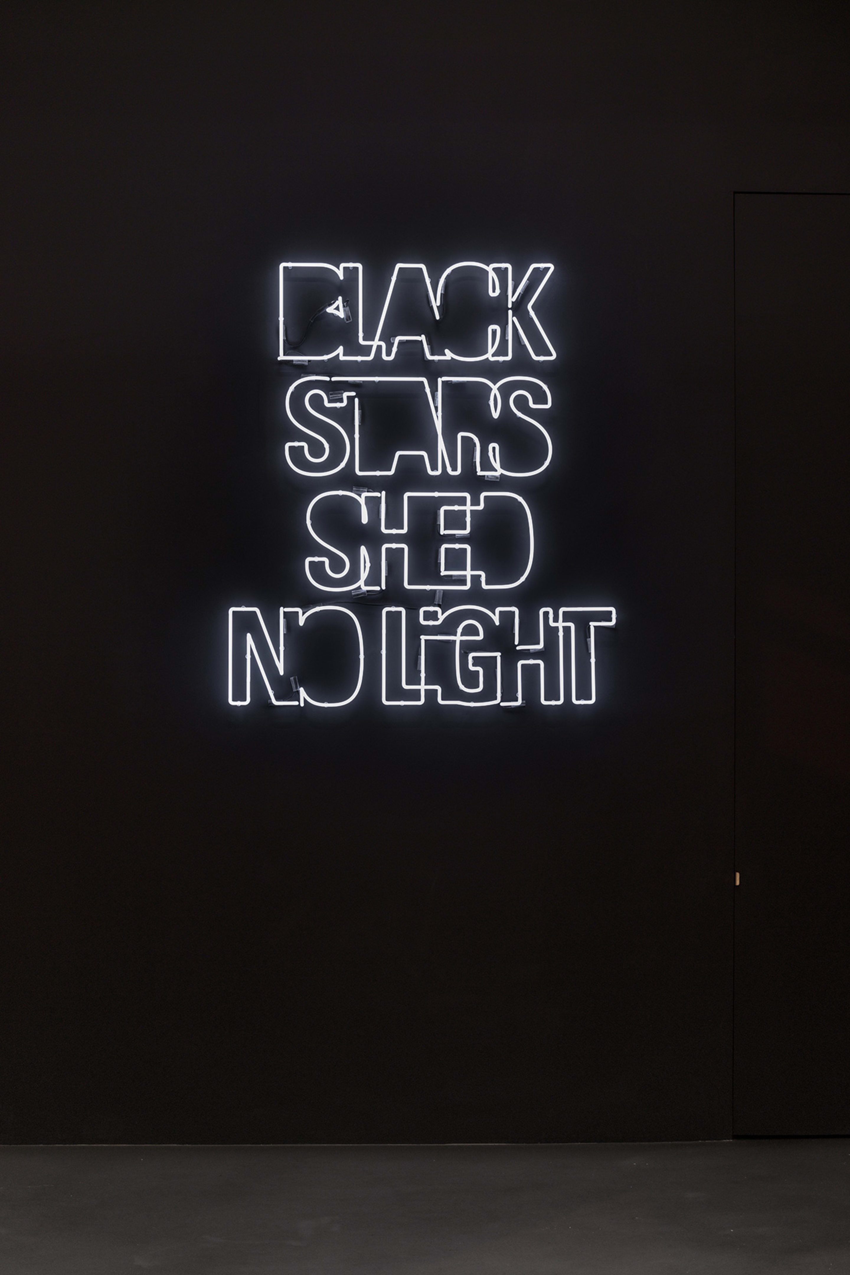 As happens frequently in Bartana’s practice works (photographs, sculptures, installations) can stem from the videos. This is also the case of the neon Black Stars Shed No Light. This sentence is the opening line of a new Finnish anthem wrote by those eight people in True Finn. Each of these eight participants contributed to a sentence for the new anthem.