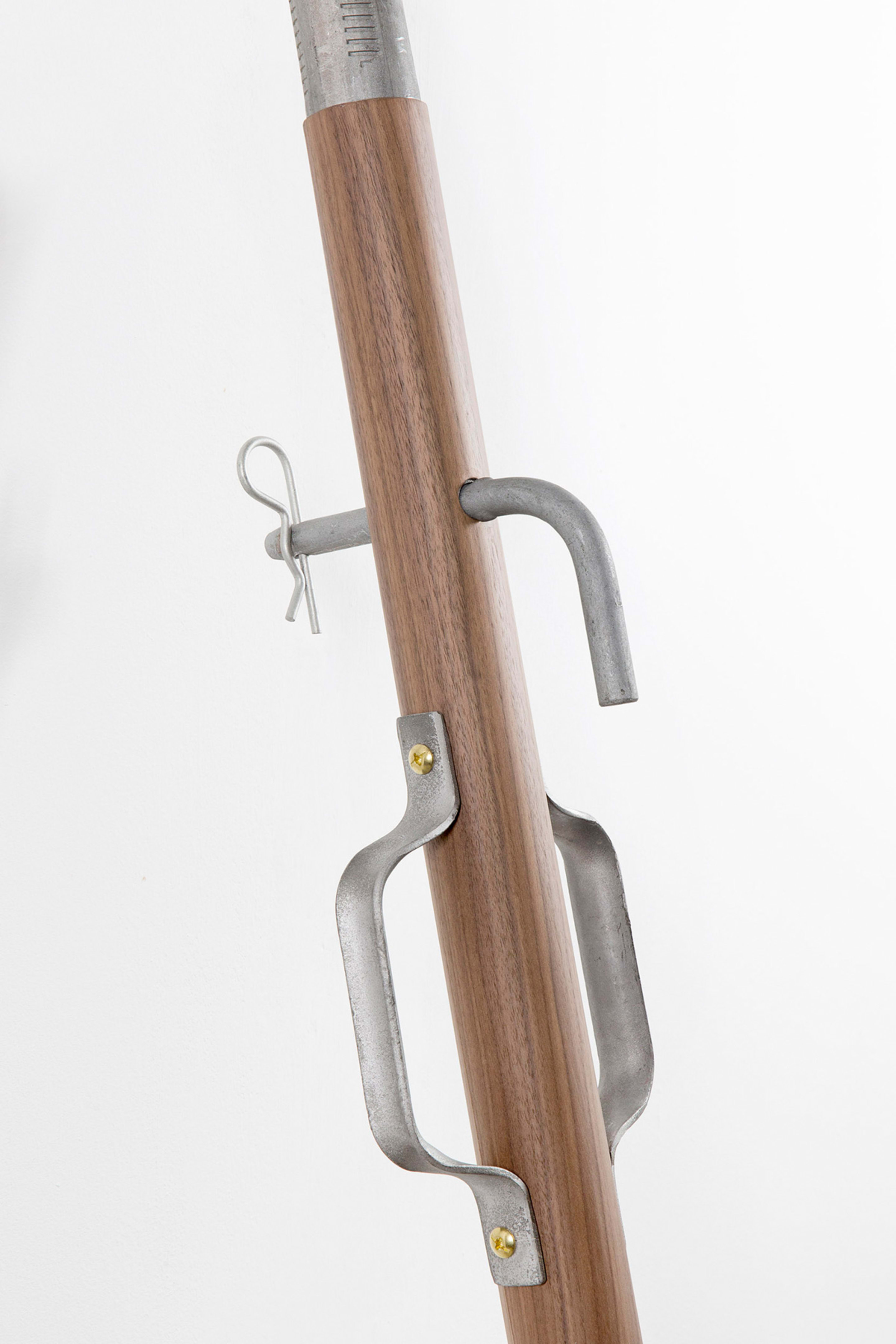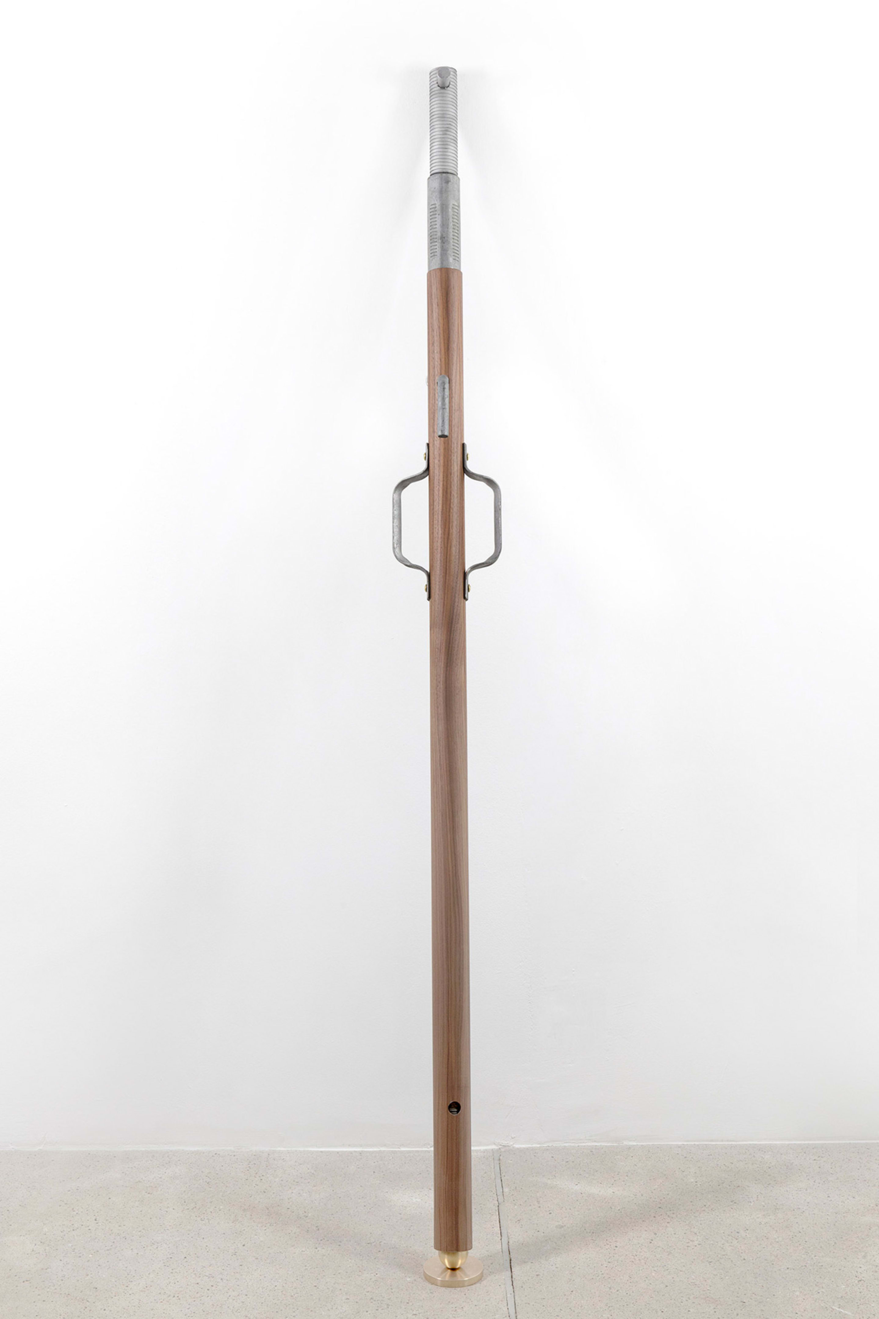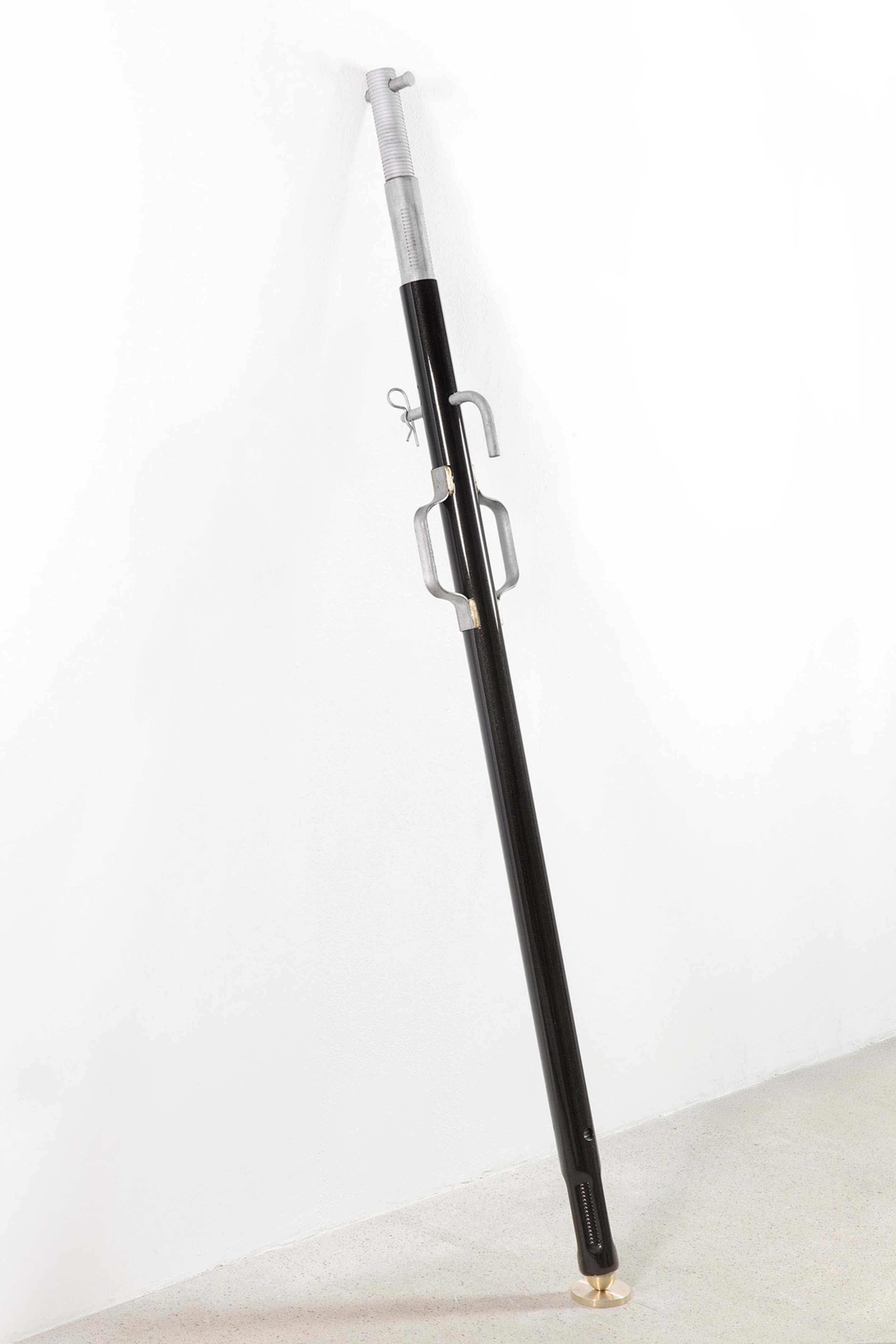 Monica Bonvicini often incorporates elements of architecture and industrial materials such as chains, scaffolding, and iron pipes in her sculptures and installations. Works from the Diener series, which the artist presented in her 2017 solo exhibition at the gallery, Our House, transform scaffolding props into eccentric design objects by coating them with luxury materials.