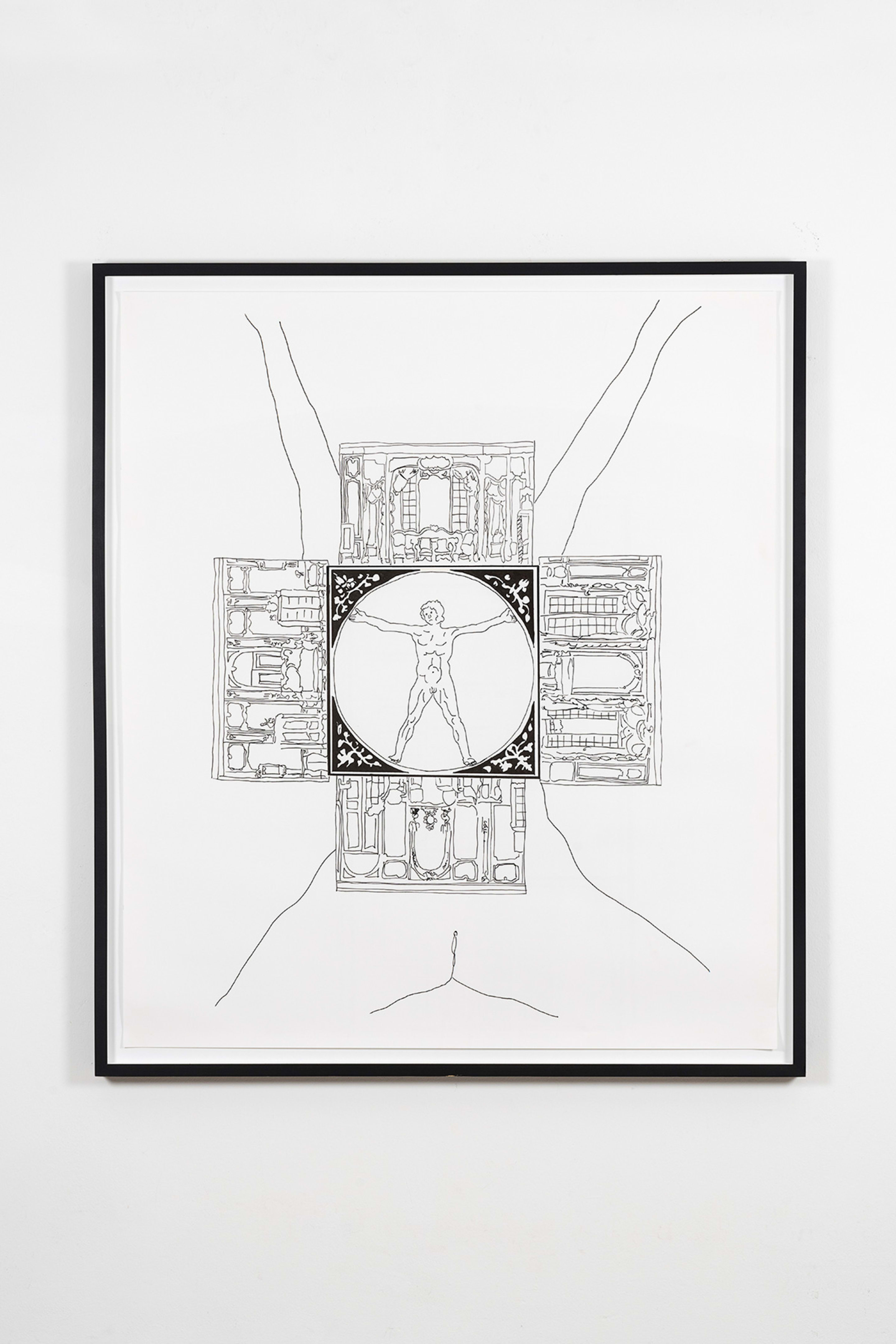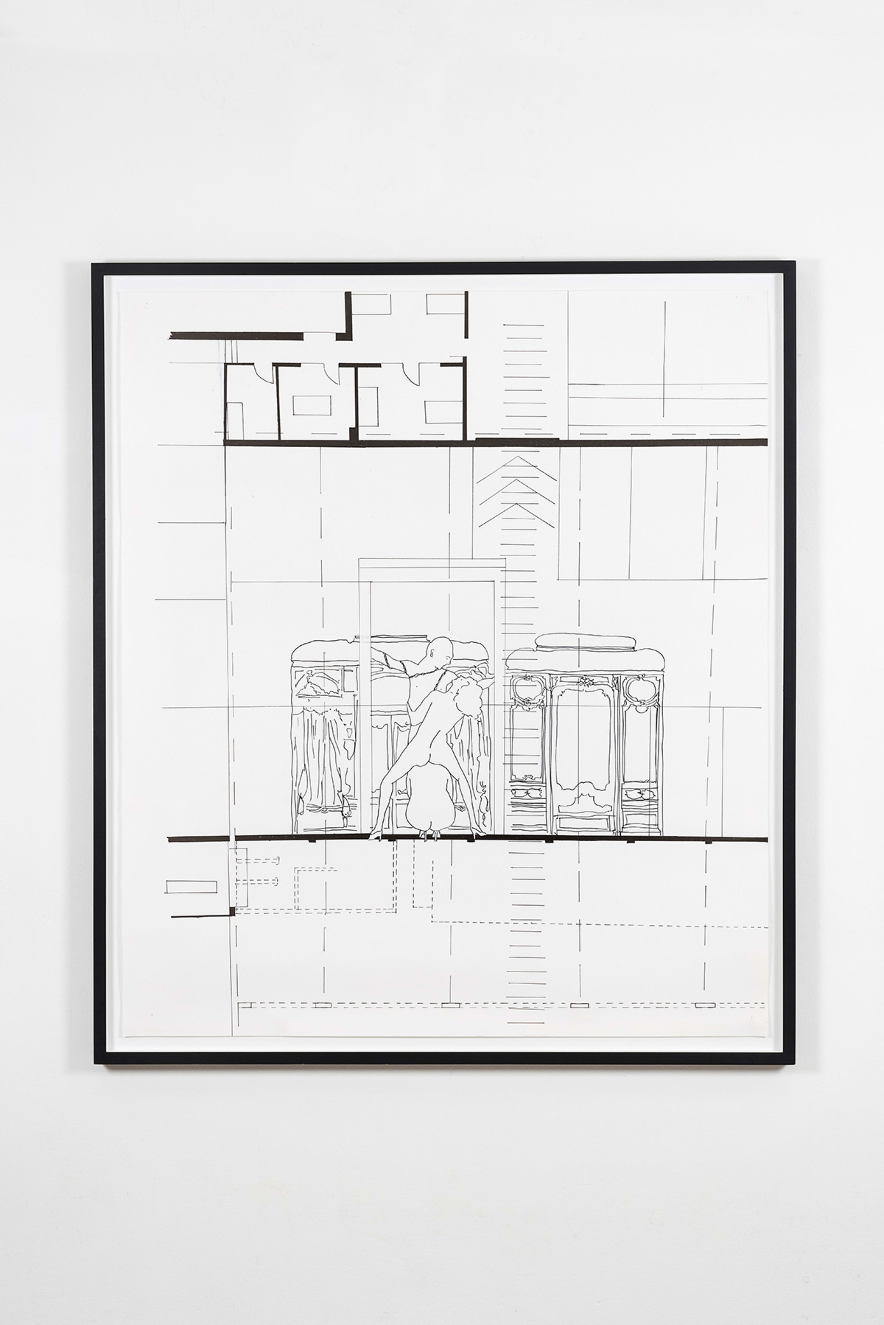 The drawings from the series Places of ID (2002) explore and expose the strong and intrinsic connections between architecture and our body with evocative erotic features. Architecture and art history become a medium to read social dynamics of power, gender and justice.