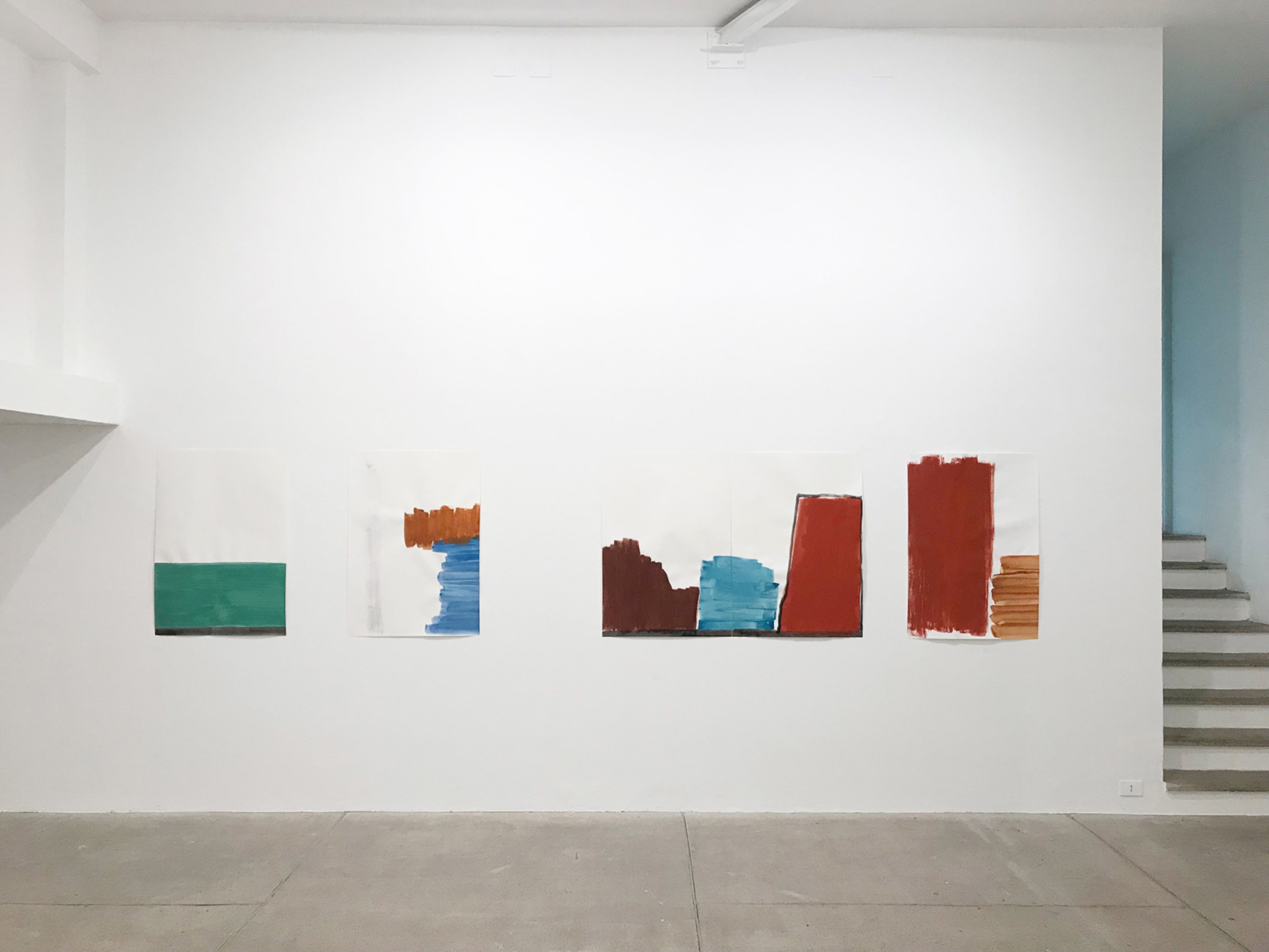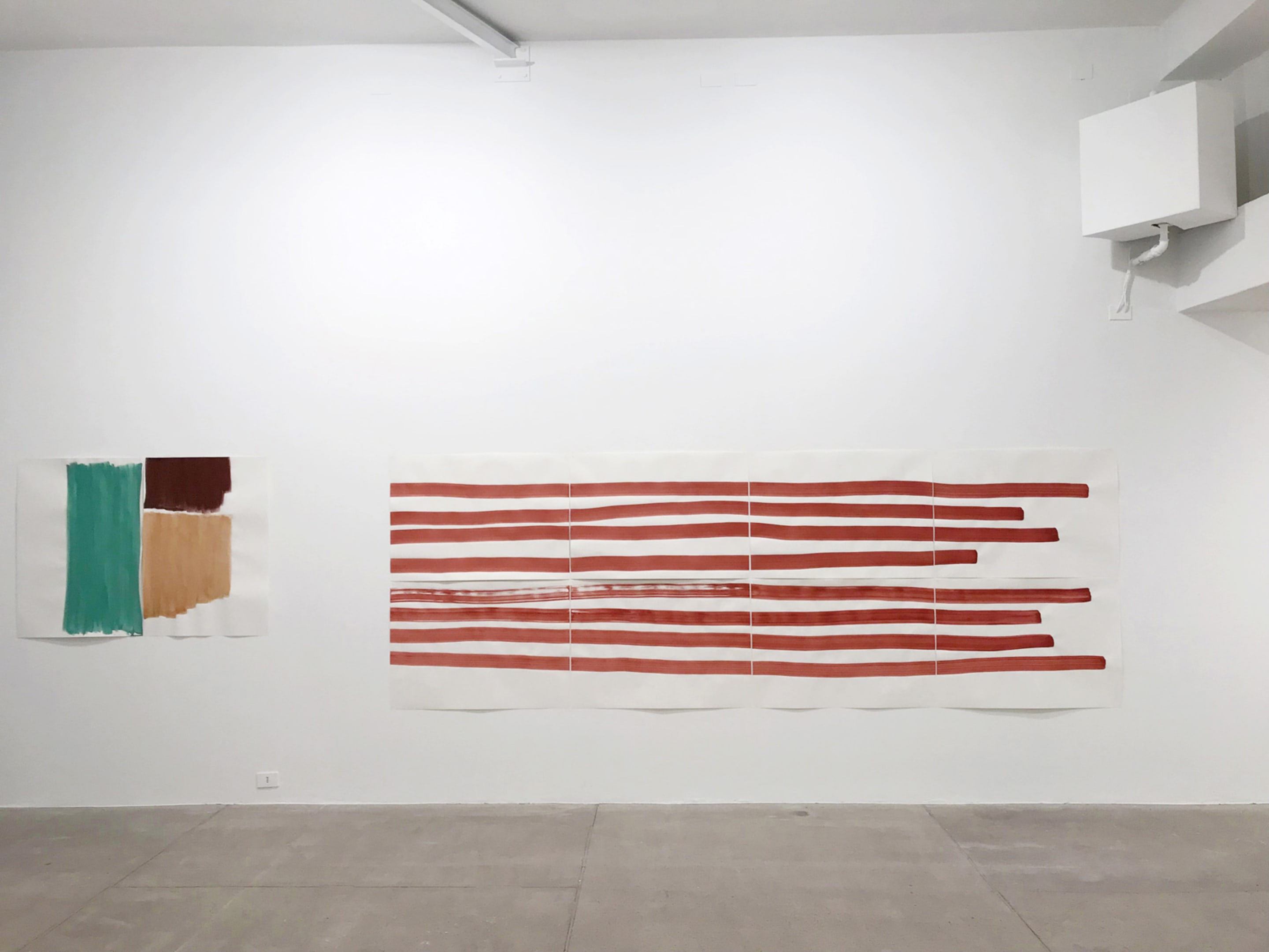 After decades of drafting her vision of the world on white sheets of paper of recurring sizes, testing their edges and their surfaces, Silvia Bächli has constructed a vocabulary of brushstrokes that have explored infinite degrees of the black and white and which have entered the world of the specificity of color. While the signs on the wall have always mattered as much as the blank spaces, for this exhibition Bächli investigates even further the surface of the wall that contains her language: for the first time at the gallery, and one of the very first ones in her practice, her drawings float freely, outside of their frames, in new compositions. Lines and larger fields of colors seem to trespass the dimensions of the drawings and merge with the white wall. Her drawings are actions, her lines tell stories. What happens when these meet? What words can describe these encounters? What musical scores could they compose?